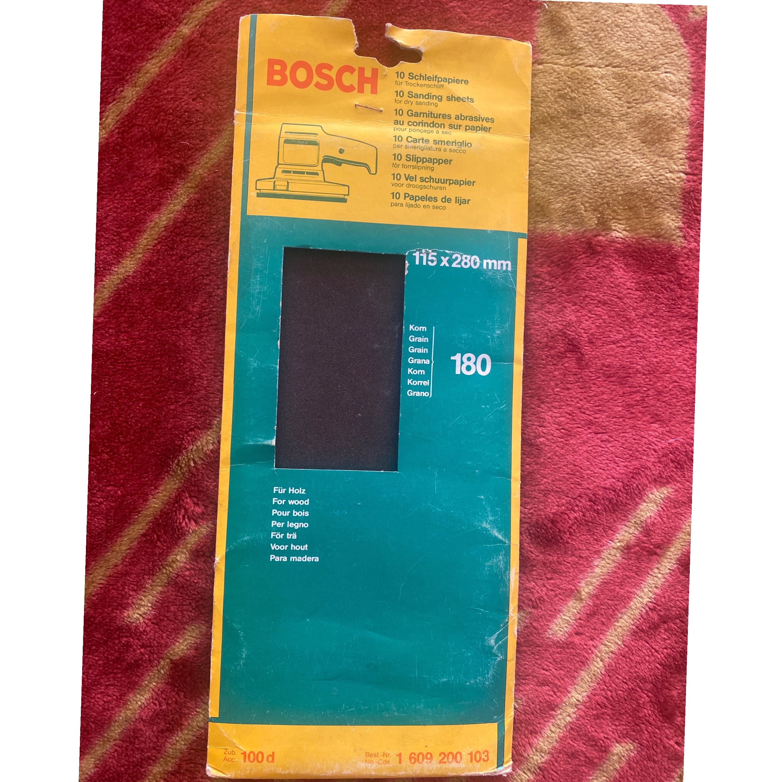 پک سه بسته ای سمباده بسیار قدیمی جمعا 16 برگ در قطع 115x280 میلیمتر قدیمی مخصوص دستگاه سمباده لرزان های دستی ساخت کارخانه بوش المان