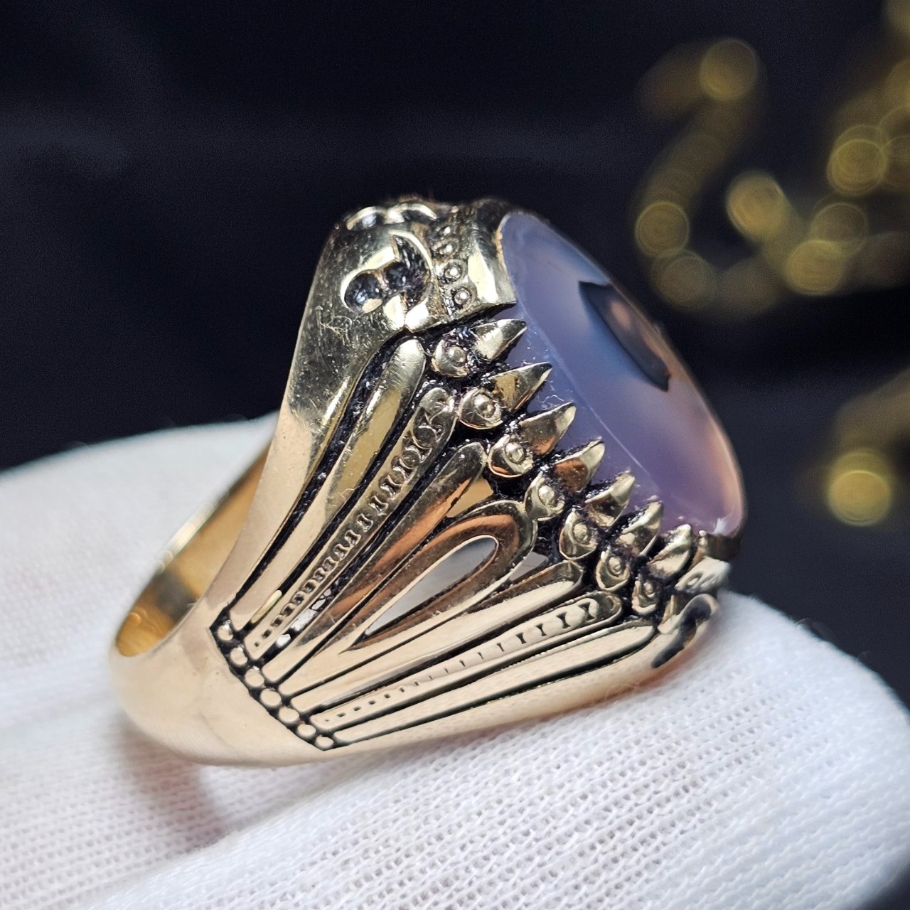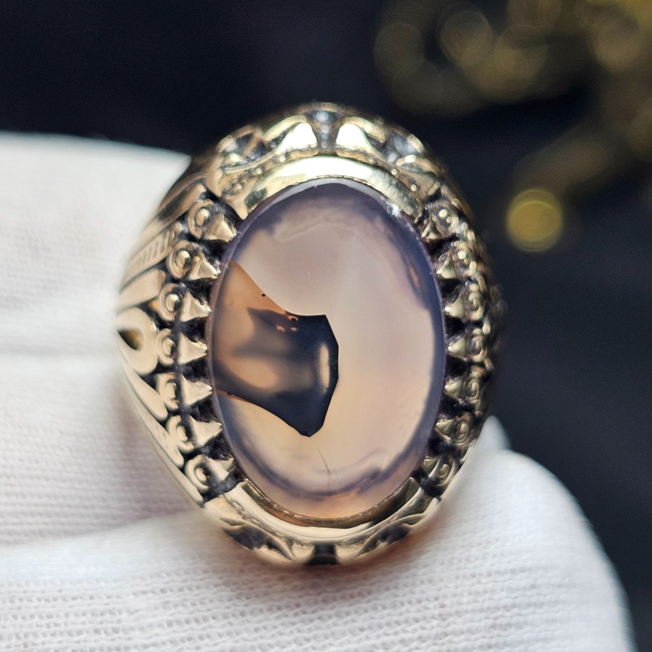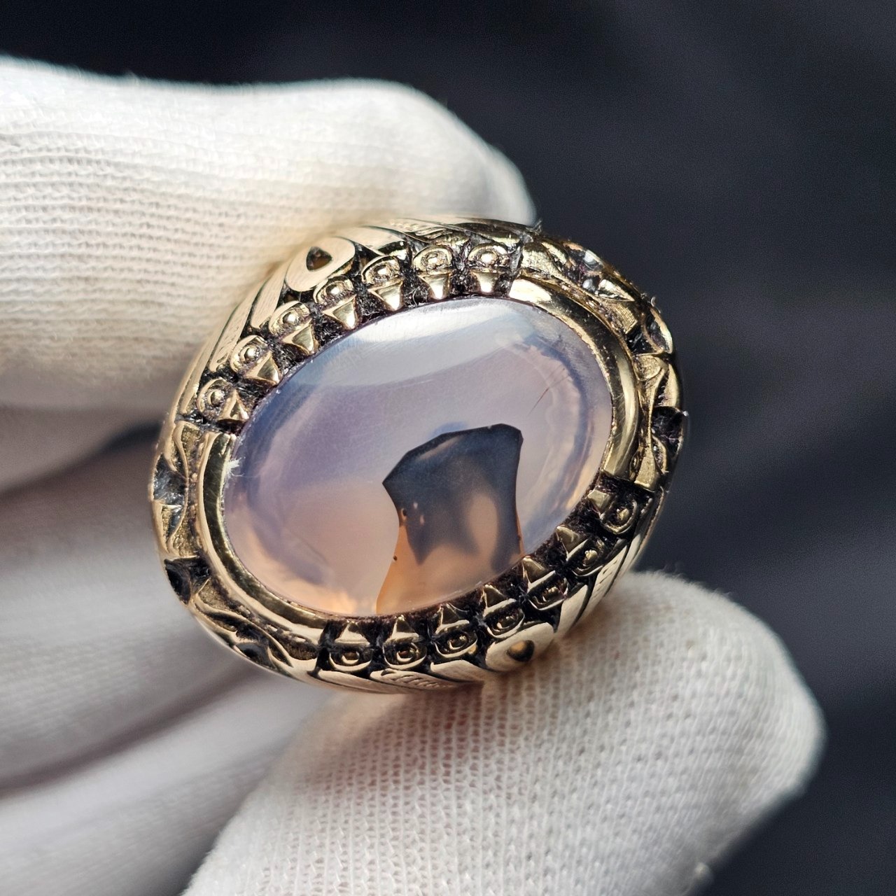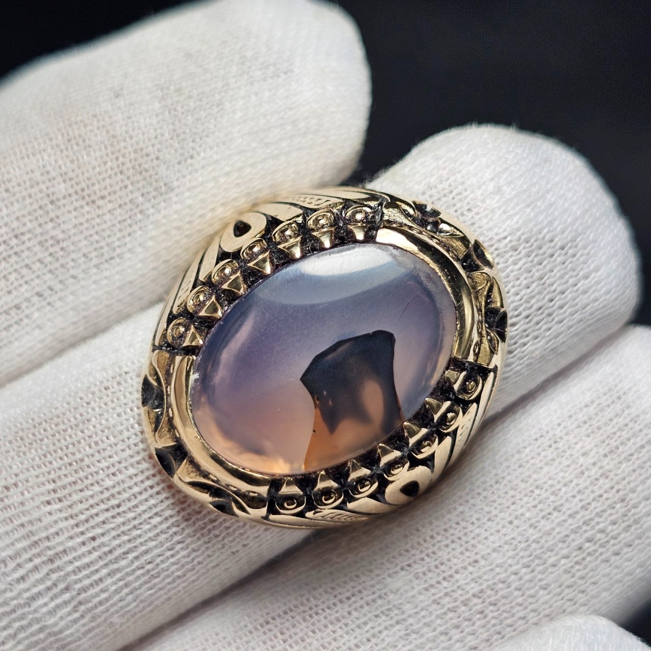 انگشتر طلاروس با سنگ عقیق طبیعی خراسان37406