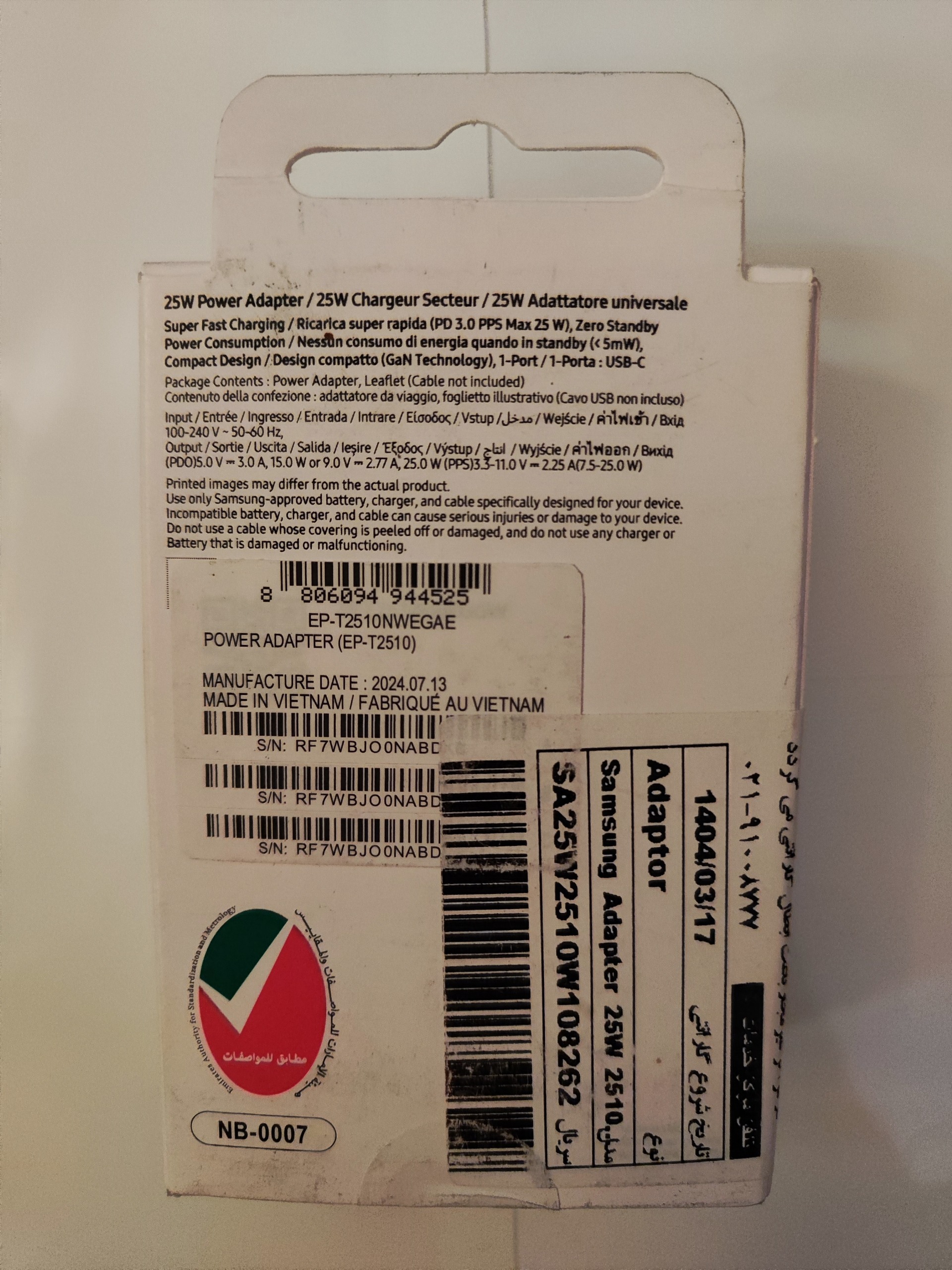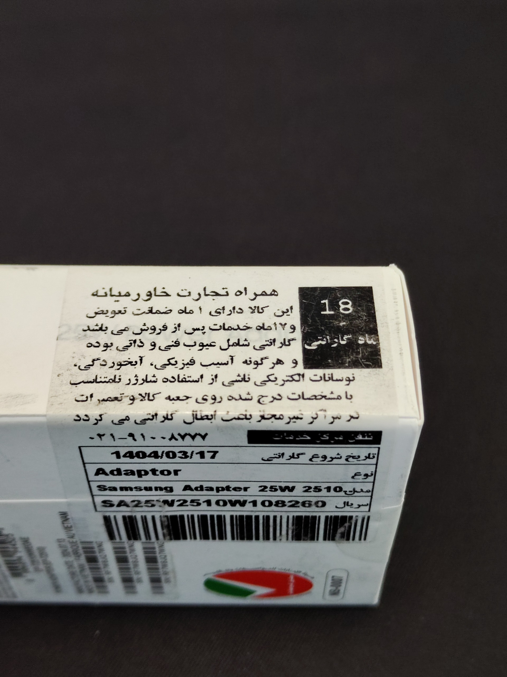 سوپرفست شارژ 25وات با 12ماه گارانتی شرکتی