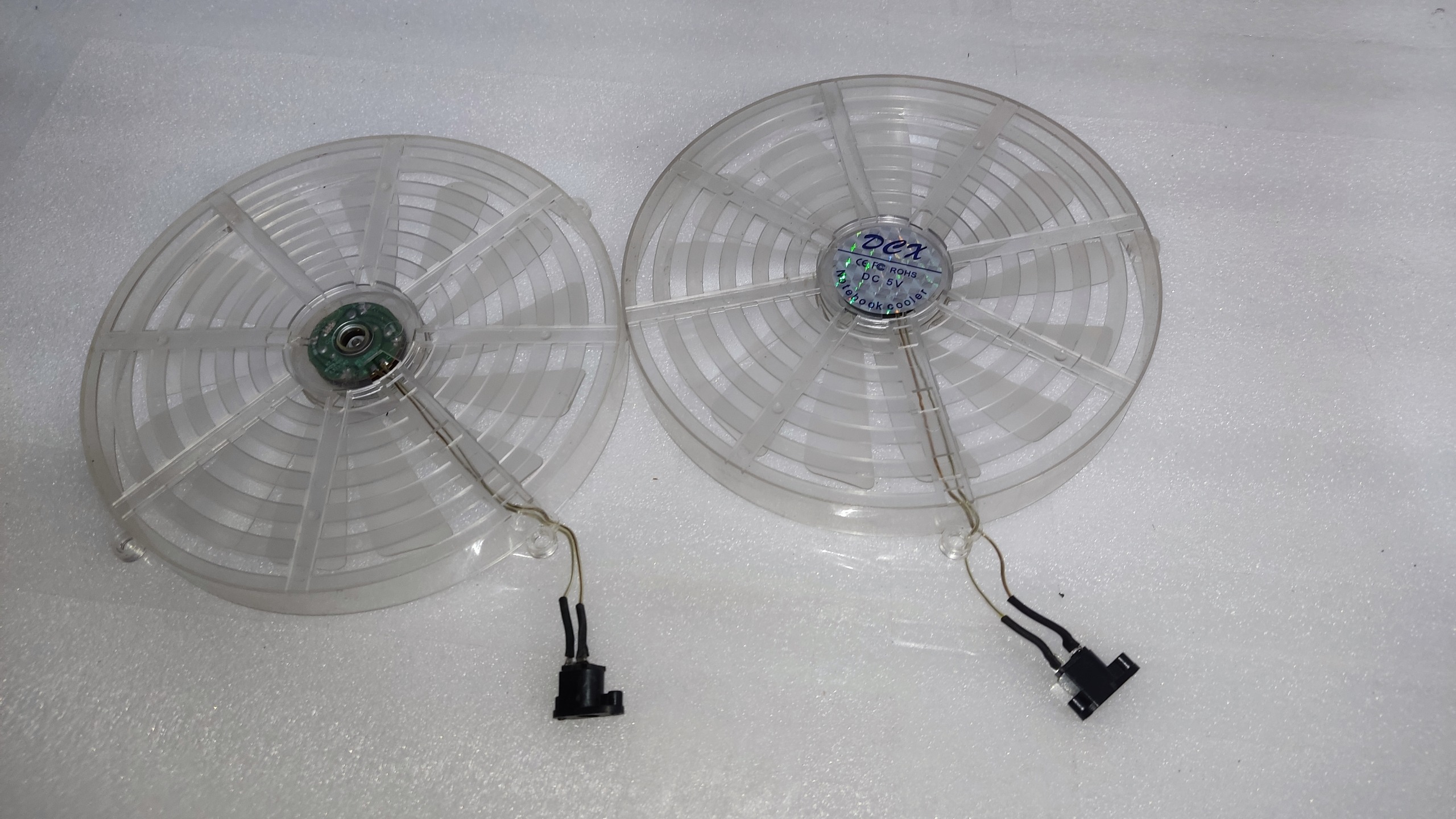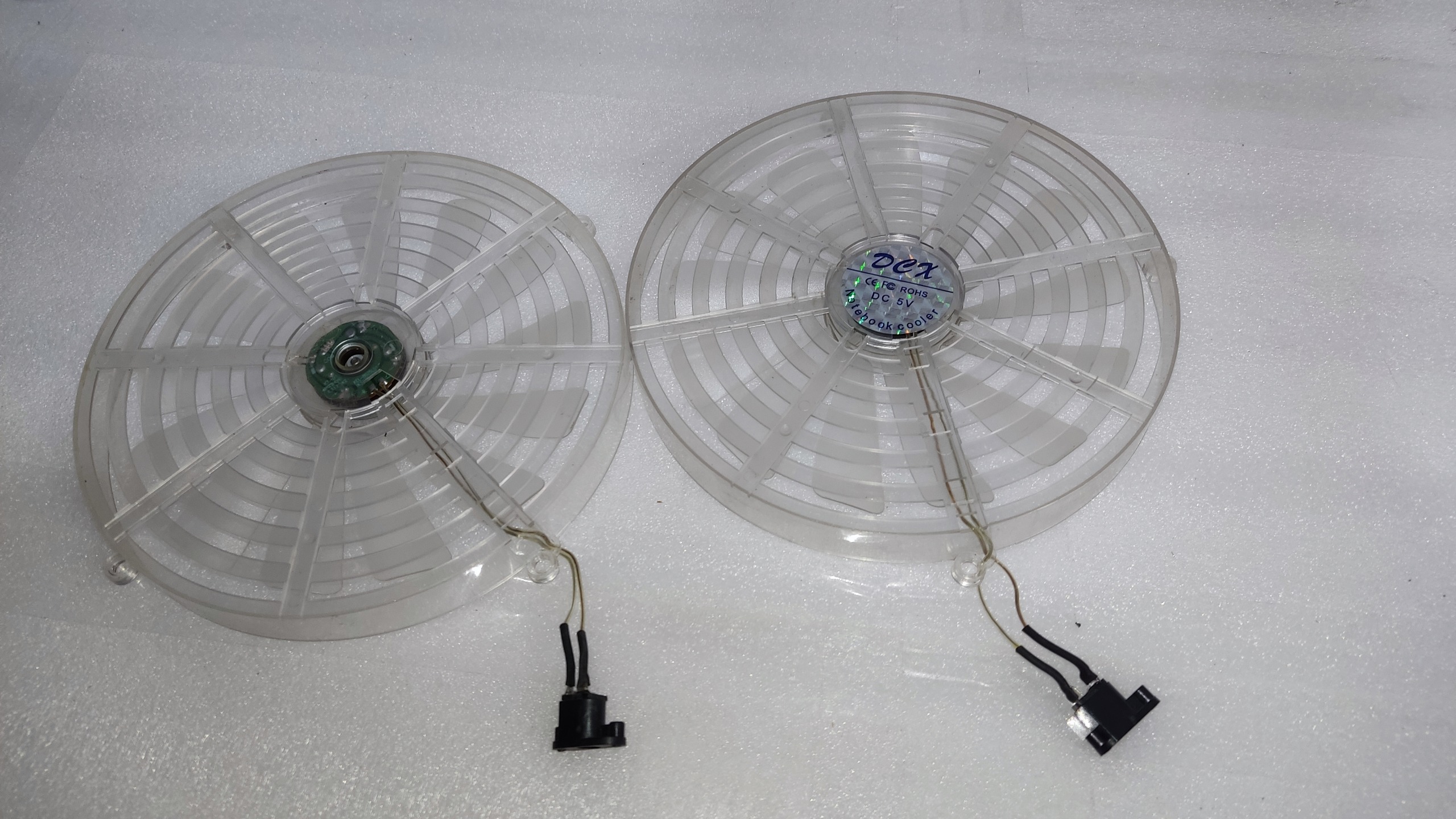 فن خنک کننده زیر لپ تاپ که من ولتاژ دادم روشن میشم منتها یکیشون برچسب وسط کنده شده طبق تصویر  پروانه هر از گاهی چرخیدنی یکم گیر میکنه ولی اون یکی سالم کار میکنه. ولی ظاهرا اون یه دونه وسطش یکم دستکاری شده نده به عنوان معیوب میفروشم که حرف و حدیثی نباشه... ظاهرا ولتاژ کاریشون هم 5 ولت هستش