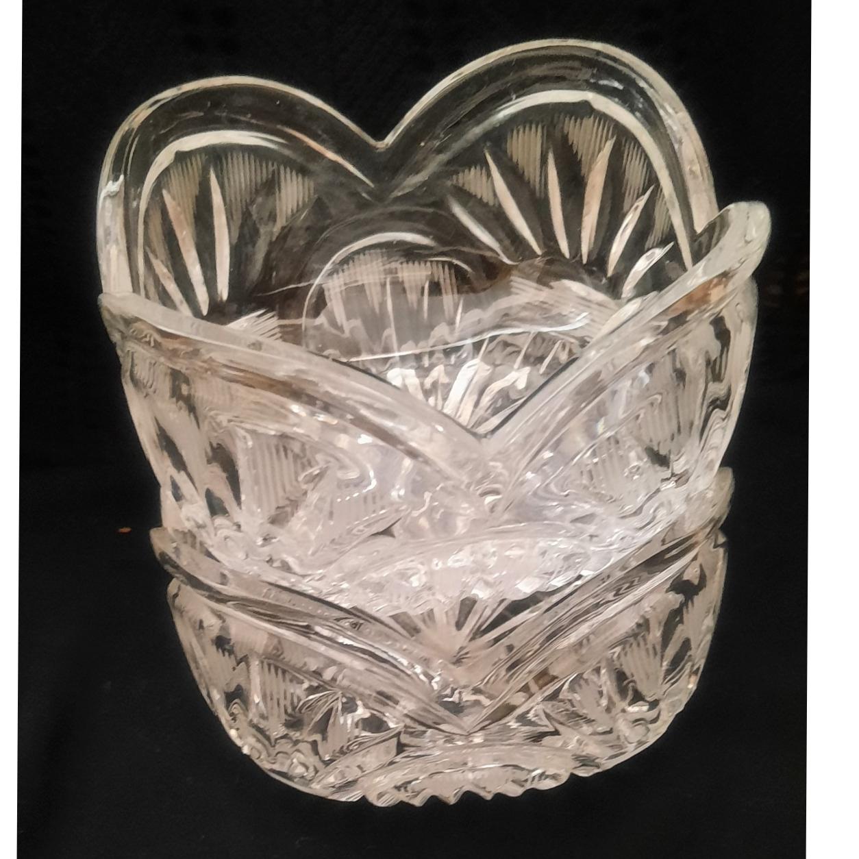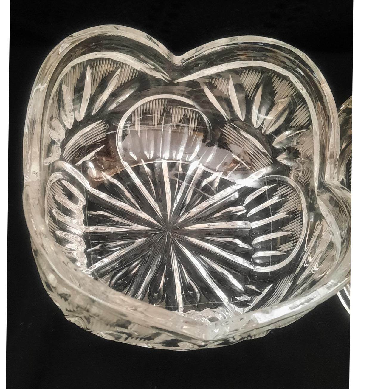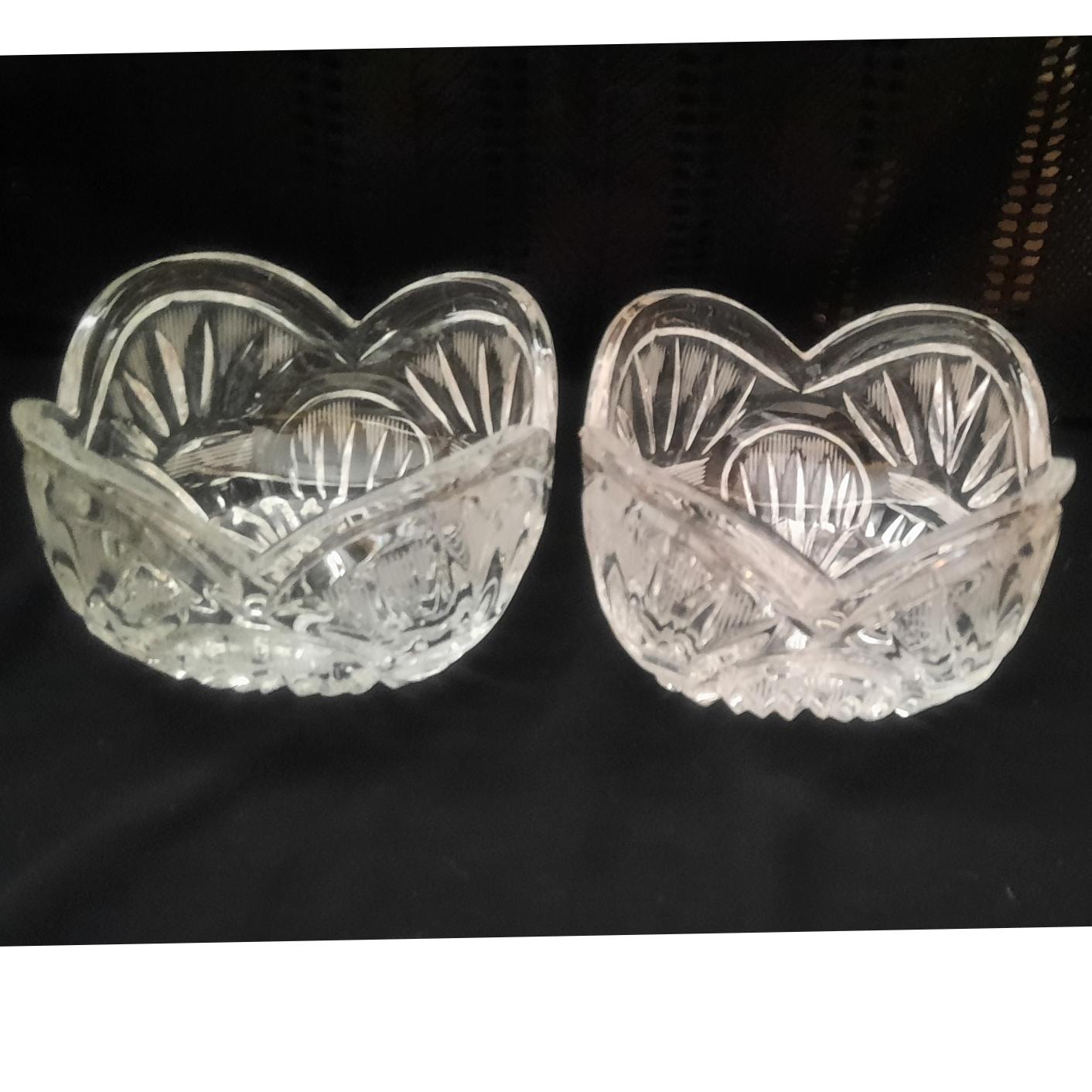 دو عدد کاسه شکلات خوری کریستال تراش دار روسی دست دوم عمر 70 سال سنگین سالم بدون لبپری فقط حباب و خط کارخانه ایی در طرف دیده میشود تکی 550 و هزینه ارسال