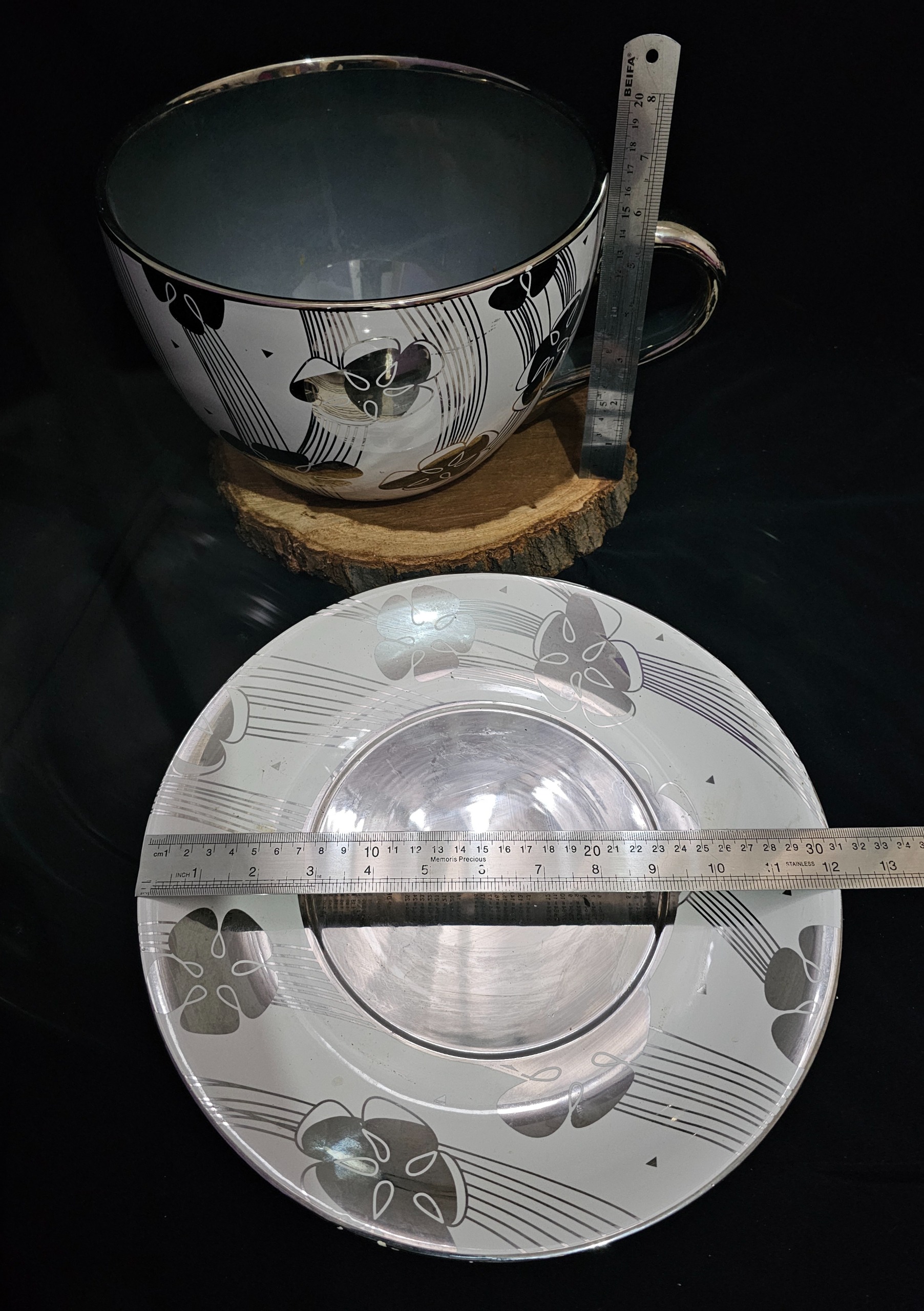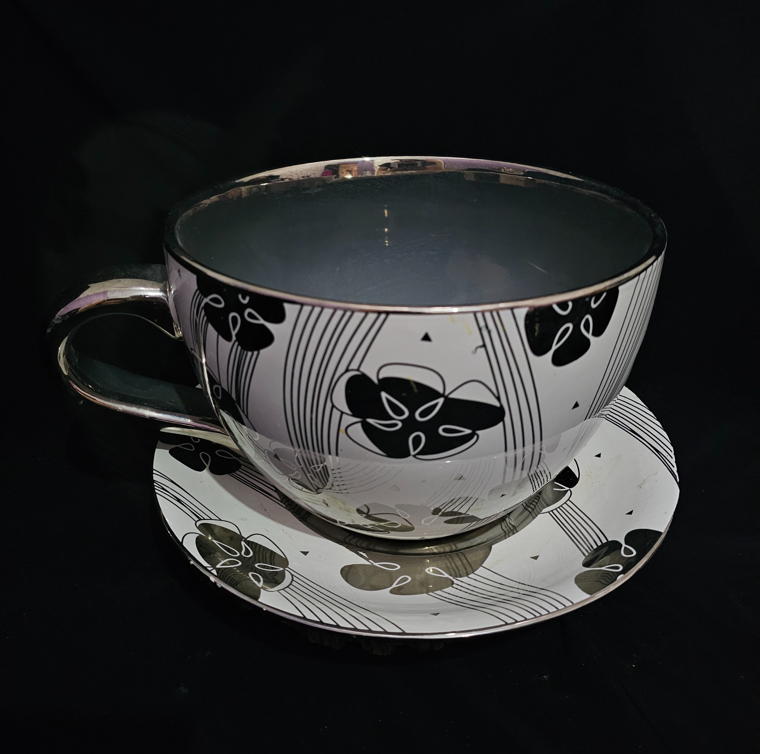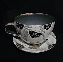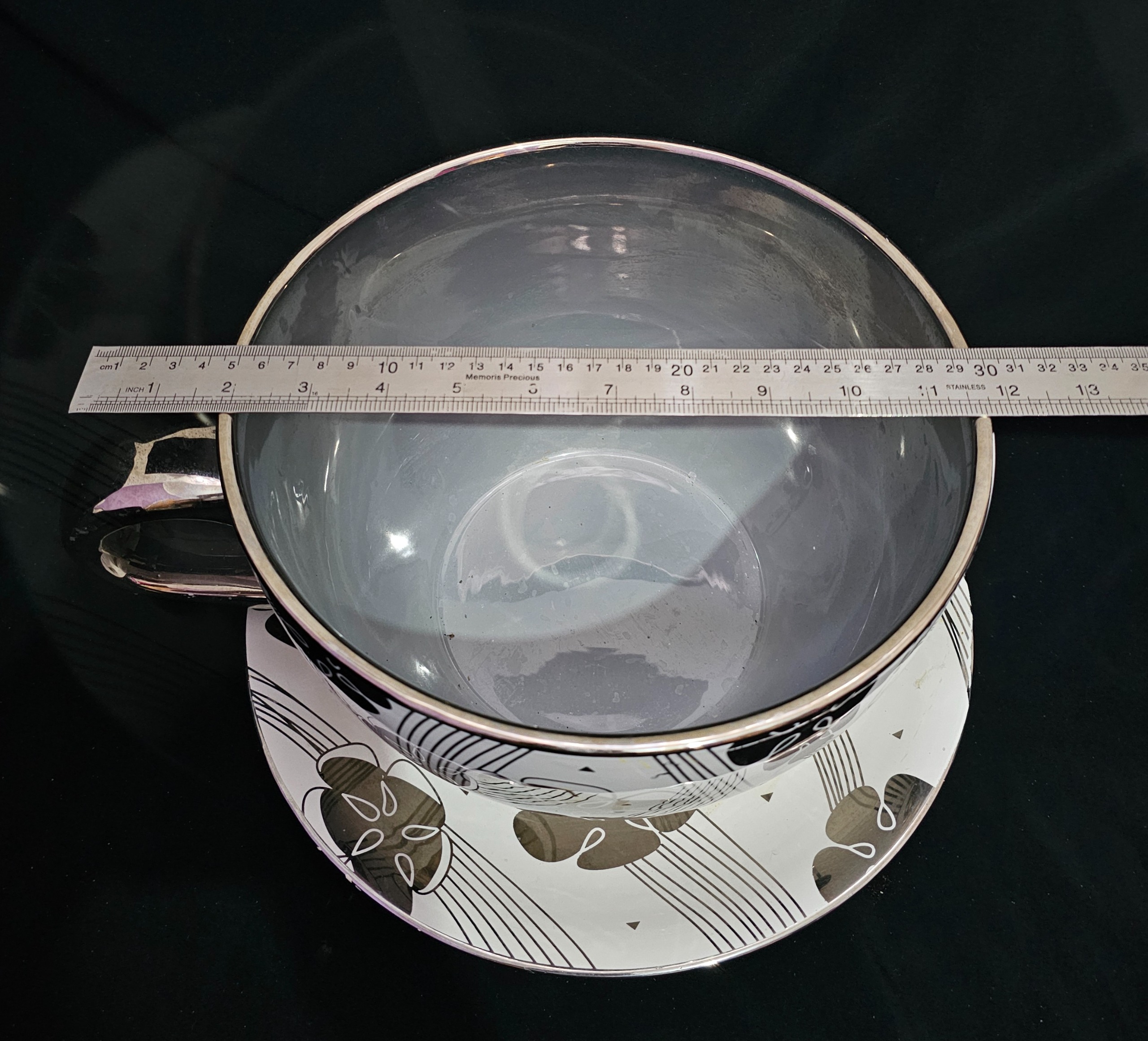 گلدان سرامیک فنجون بزرگ نقره ای خاص وکمیاب