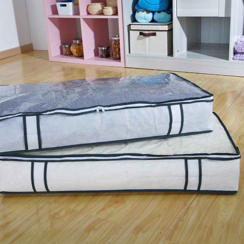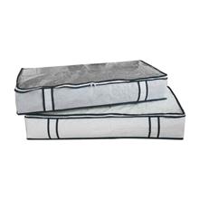 کاور پتو و لباس زیر تختی بسته 1 عددی ، تمام آن چیزی است که برای نظم بخشیدن و همچنین ایجاد امکان استفاده از فضای زیر تخت نیاز دارید . این محصول از جنس پارچه کاوری (اسپان باند) تولید شده که شامل یک محفظه همراه با درپ زیپ دار است که از بالا باز و بسته می شود . در قسمت جلوی کاور دو دستگیره پارچه ای تعبیه شده که امکان حرکت کاور در زیر تخت به سمت جلو و عقب کشیدن را برای کاربر خود به سادگی فراهم می کند . بنابراین دشواری بیرون آوردن و مجدداً داخل بردن کاور با توجه به فضای محدود زیر تخت را نخواهید داشت . قسمت جلوی درب کاور پتو و ملحفه زیر تختی ، دارای سطح طلقی می باشد که امکان مشاهده محتویات درون کاور را به وجود آورده است . بنابراین دیگر نیازی به باز کردن درب محفظه برای اطلاع از محتویات درون آن وجود ندارد . پتو ، ملحفه ، لباس و یا هر وسیله دیگری متناسب با ابعاد محفظه را می توانید درون کاور قرار داده و آن را زیر تخت ، داخل کمد و ... جای دهید .