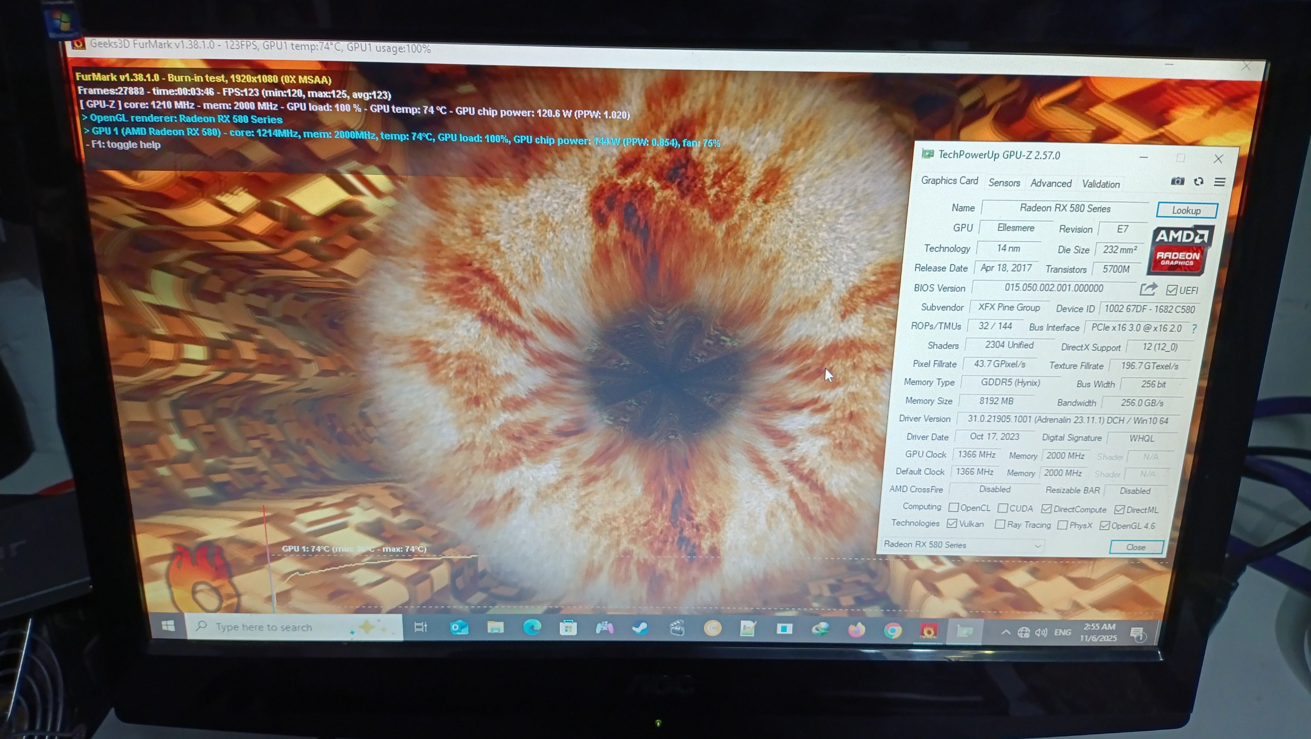 تست فور مارک کارت گرافیک حدود 10 دقیقه به دمای 71 درجه میرسد که نشان از سلامت بسیار عالی کارت گرافیک میباشد