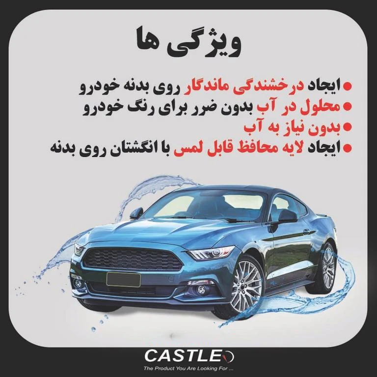 - بدون نیاز به آب(روی بدنه بپاشید،دستمال بکشید و لذت ببرید)