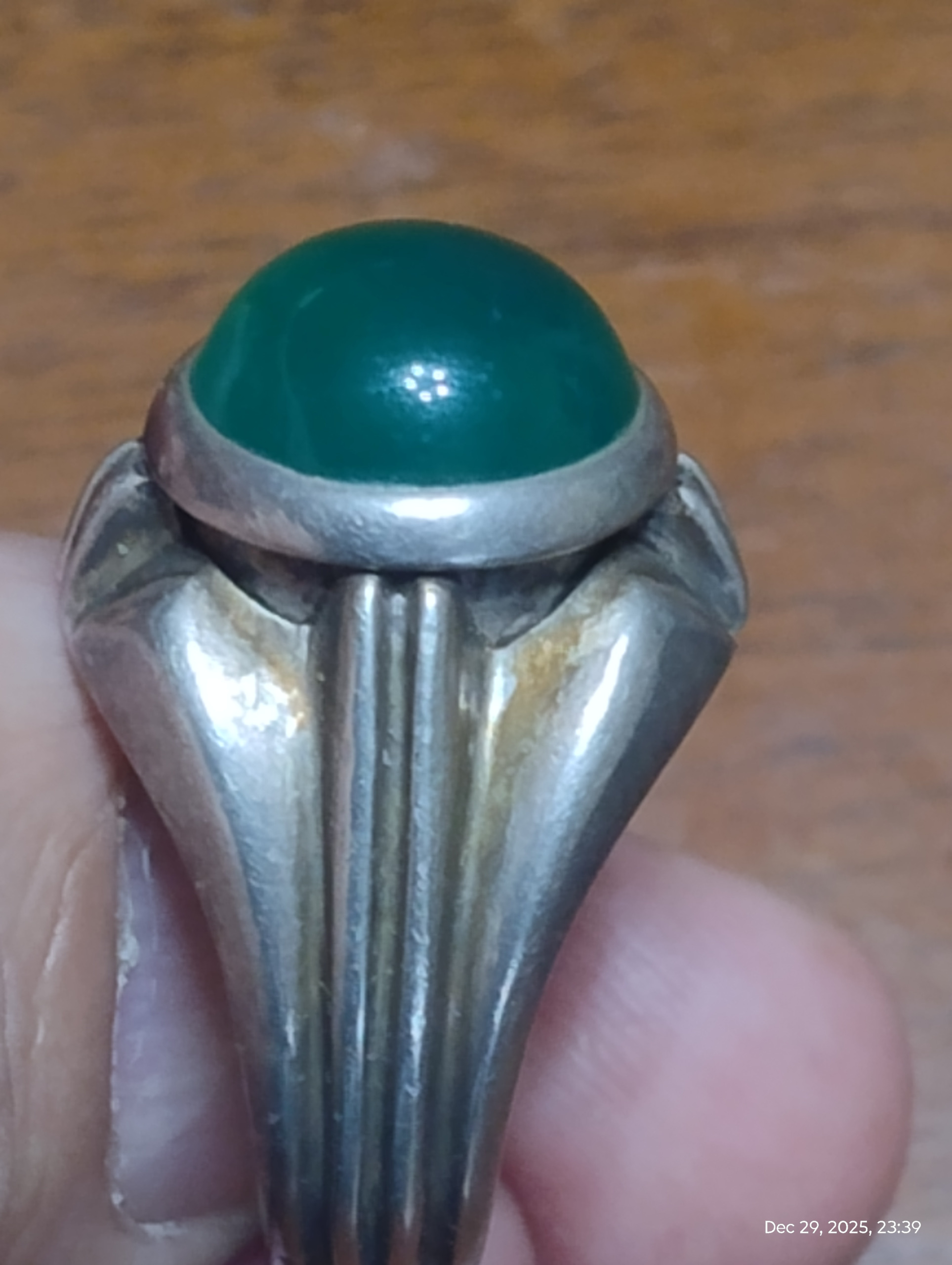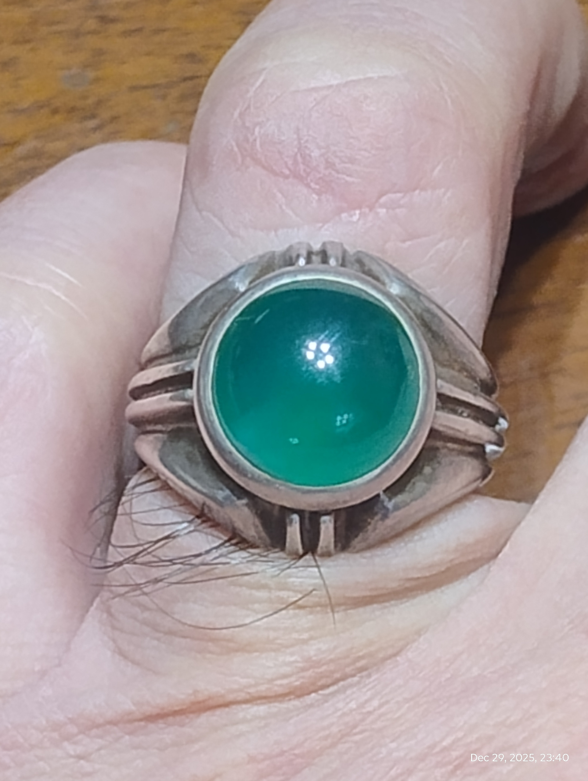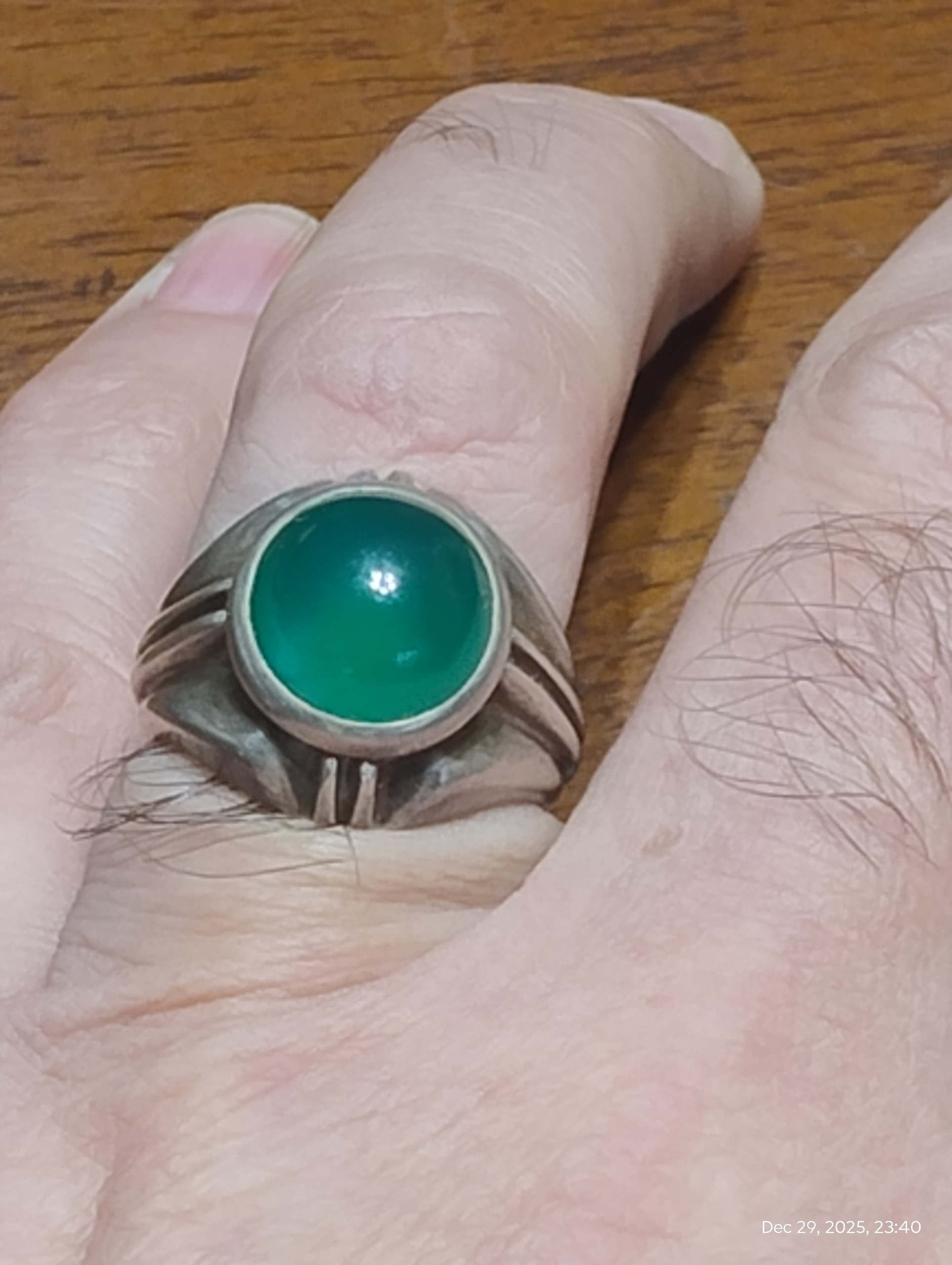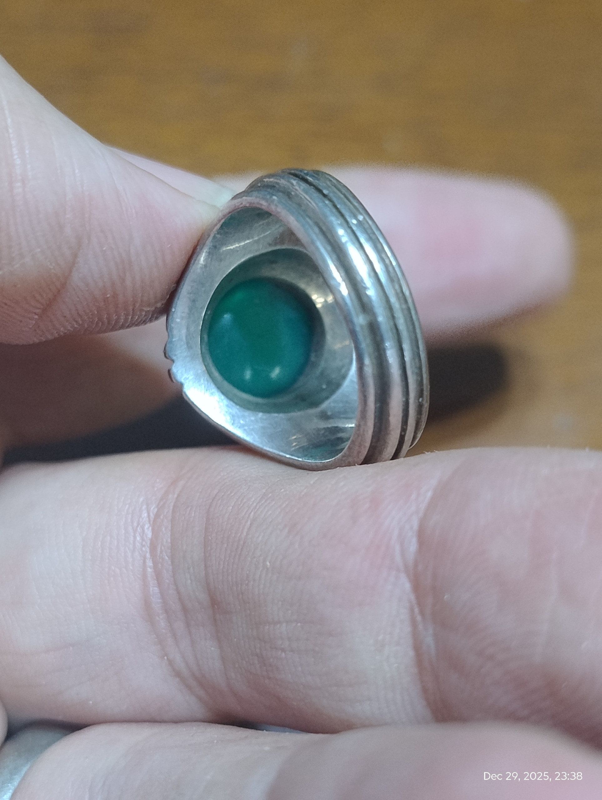 انگشتر دستساز سفارشی با عقیق سبز کهنه