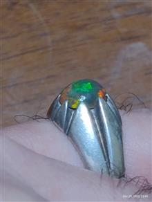 انگشتر سفارشی ساز استاد کریمی با دو مهر و بلک اوپال آفریقا با بازی رنگ عالی / بسیار زیبا و مجلسی