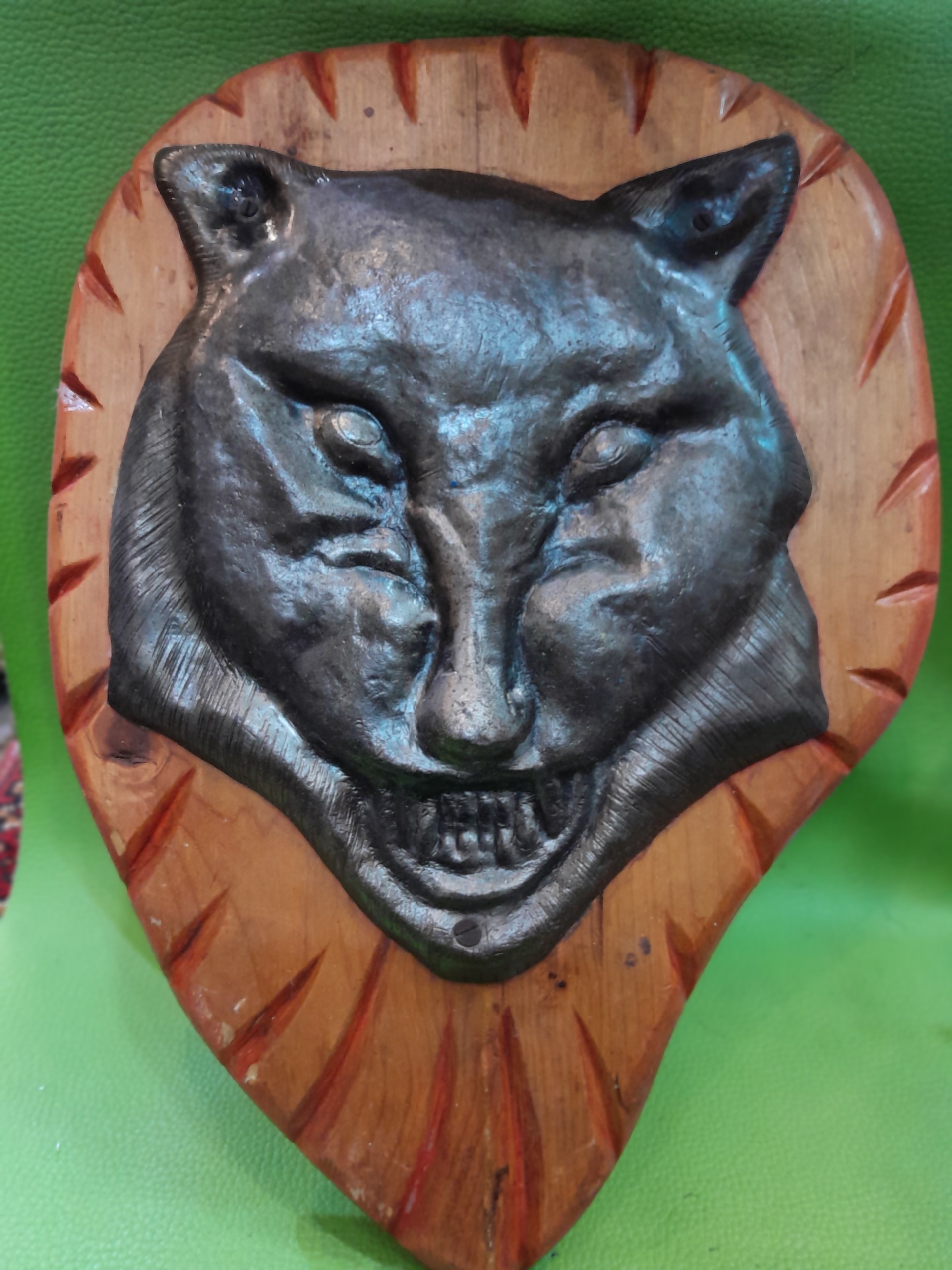 مجسمه کله گرگ فولادی دستساز کلکسیونی وکمیاب