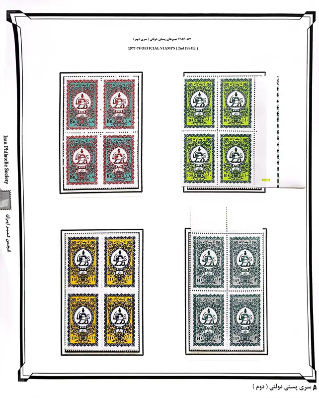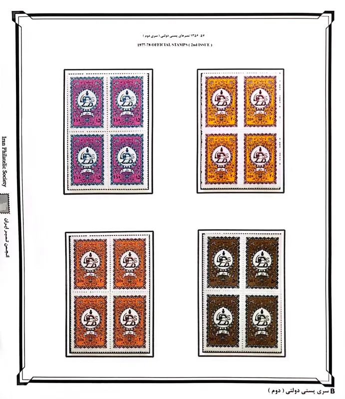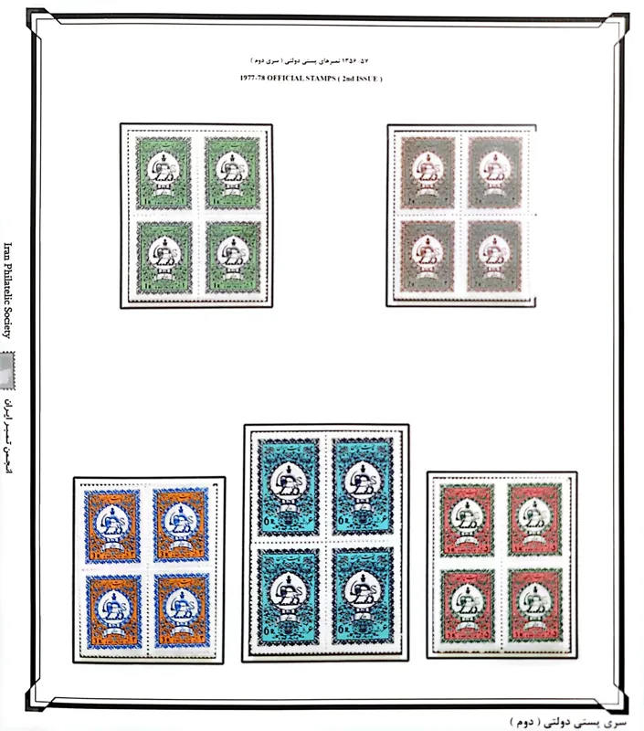 سری بلوکی پستی دولتی دوم دوره محمد رضا پهلوی پهلوی با کیفیت عالی و بدون شارنیه، بدون بازشدگی دندانه.
