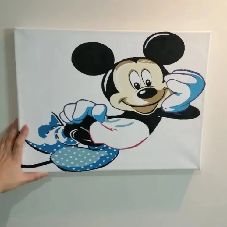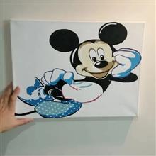 طرح میکی موس نقاشی با رنگ روی بوم هست ابعاد 30 ×40 کار وارداتی هست که فقط رنگ آمیزیش انجام شده