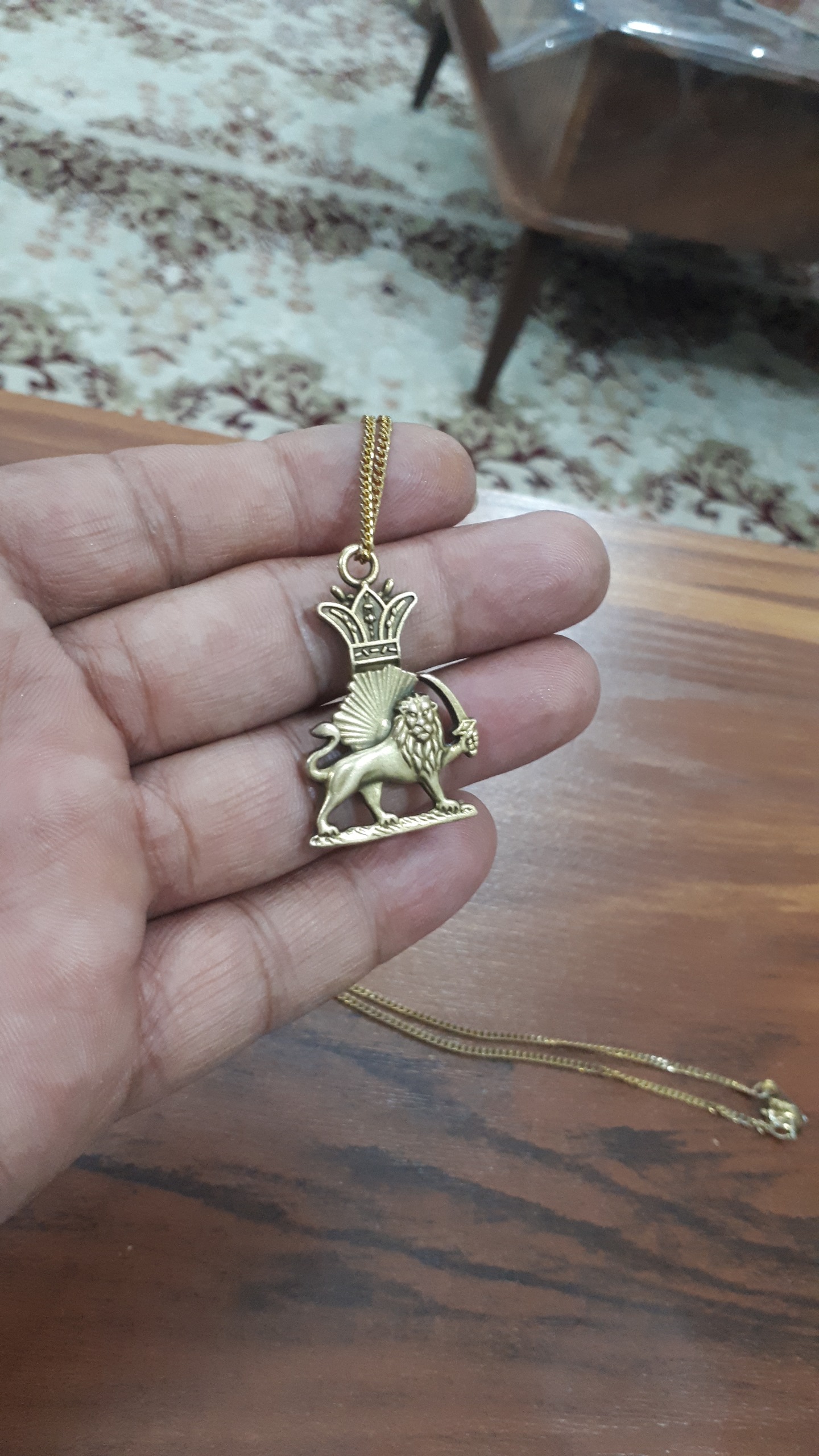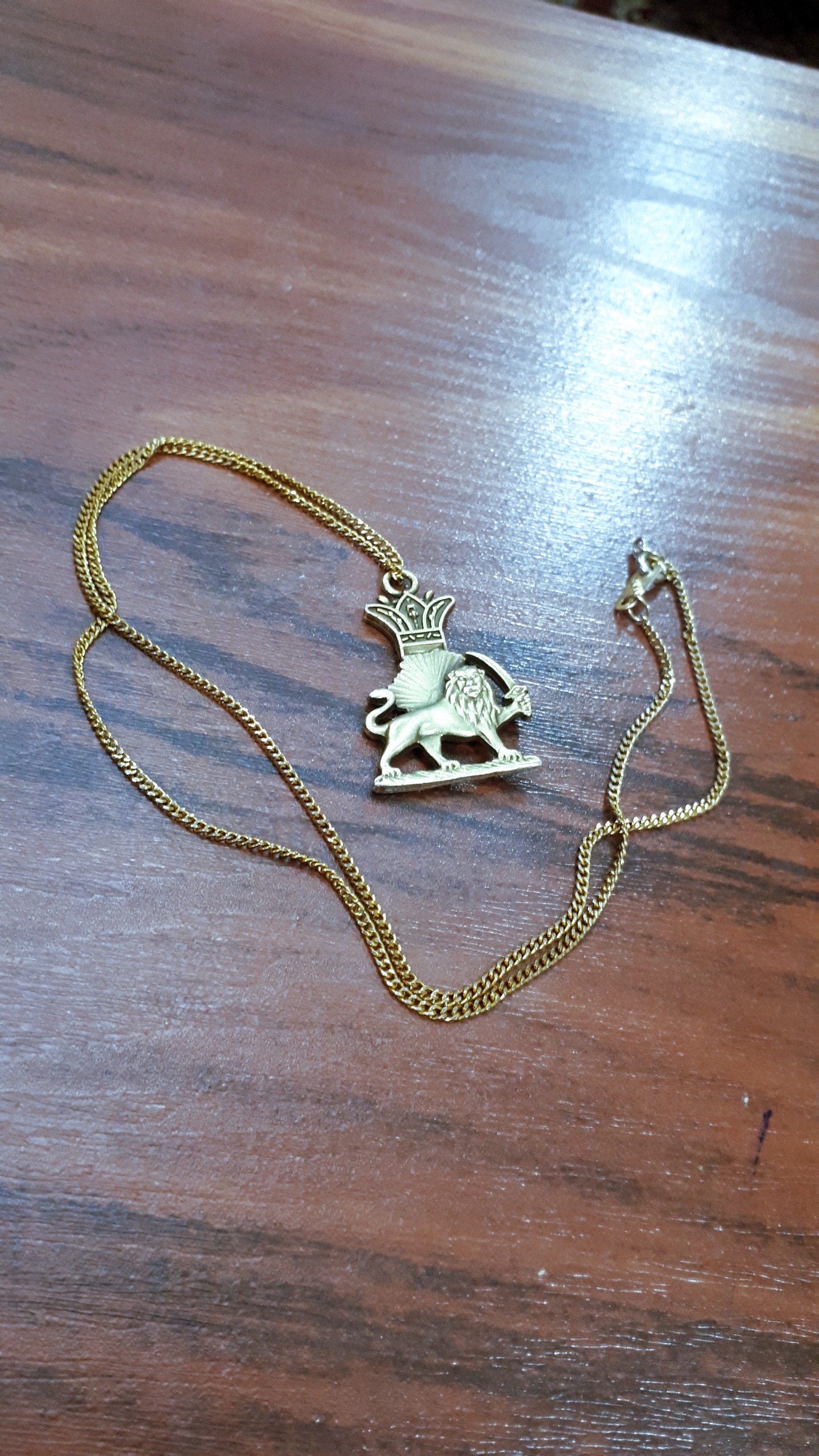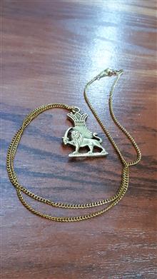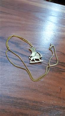 ظریف وزیبا ،جنس شیرخورشید برنج میباشد ولی زنجیر فلزی هست ،ضمنا َشیر 2رو هست ،مطابق تصویر ارسال میشود، یاحق