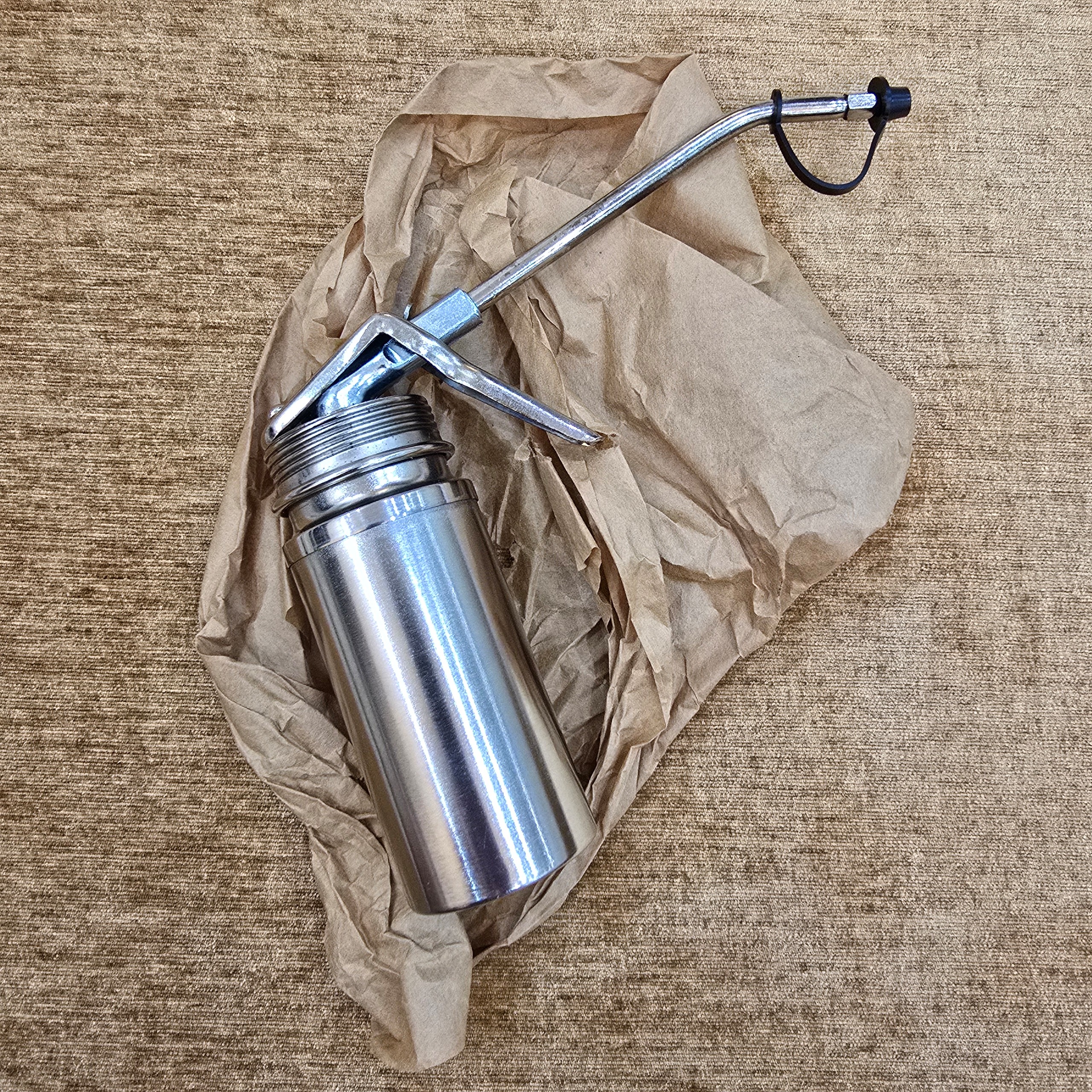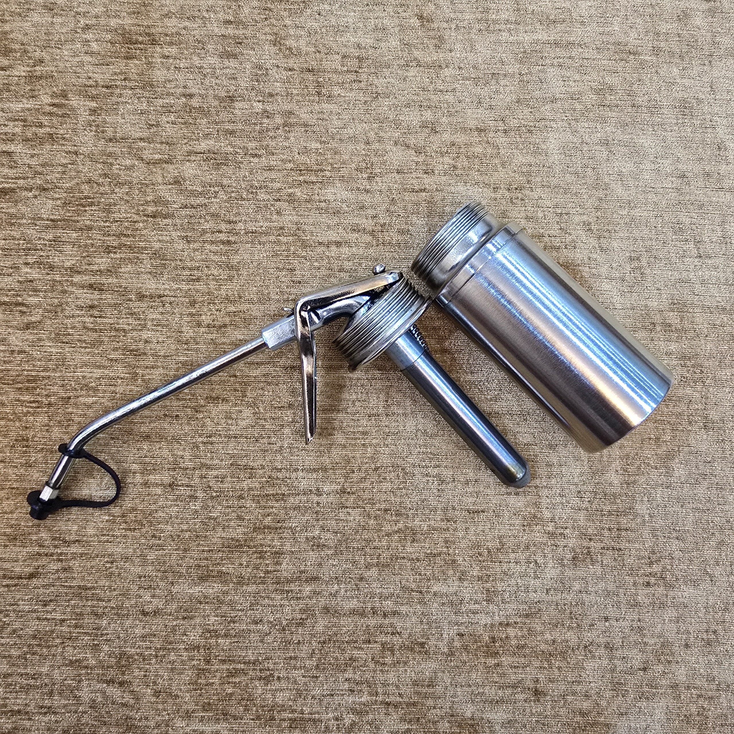 روغن دان تمام فلزی آنتیک امریکایی ساخت دهه 70 میلادی بسیار با کیفیت برند kp
