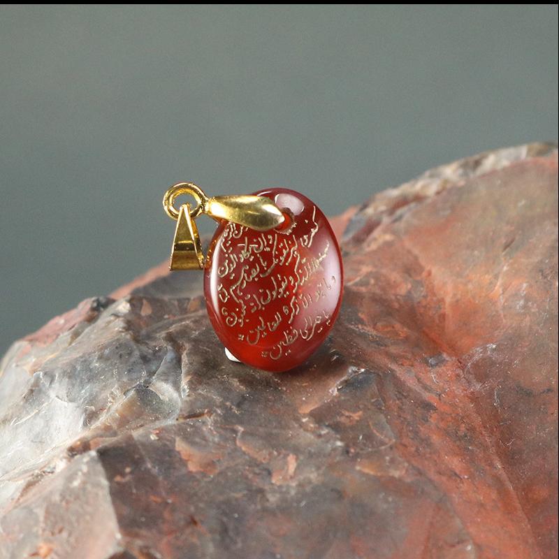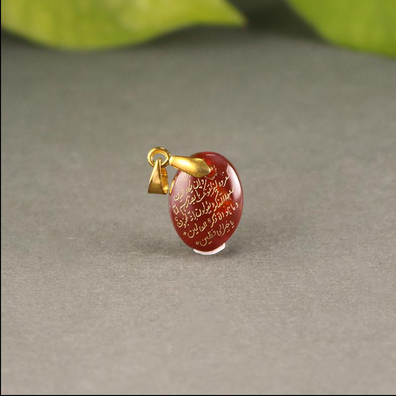عقیق یمنی خوشرنگ با حکاکی زیبا و خوش خط دعای و ان یکاد