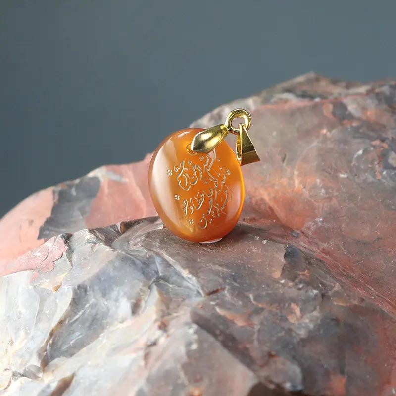 عقیق یمنی خوشرنگ با حکاکی زیبا و خوش خط