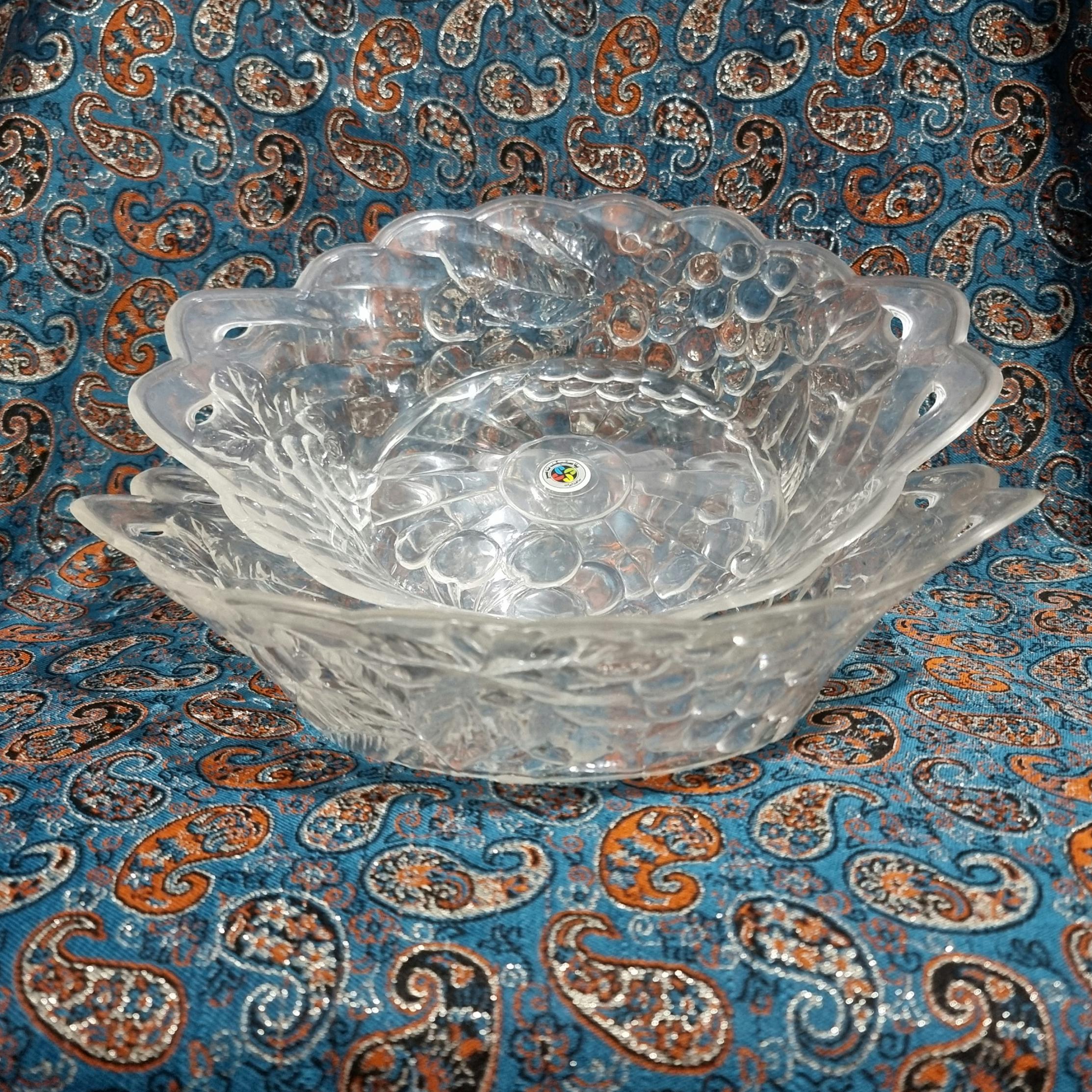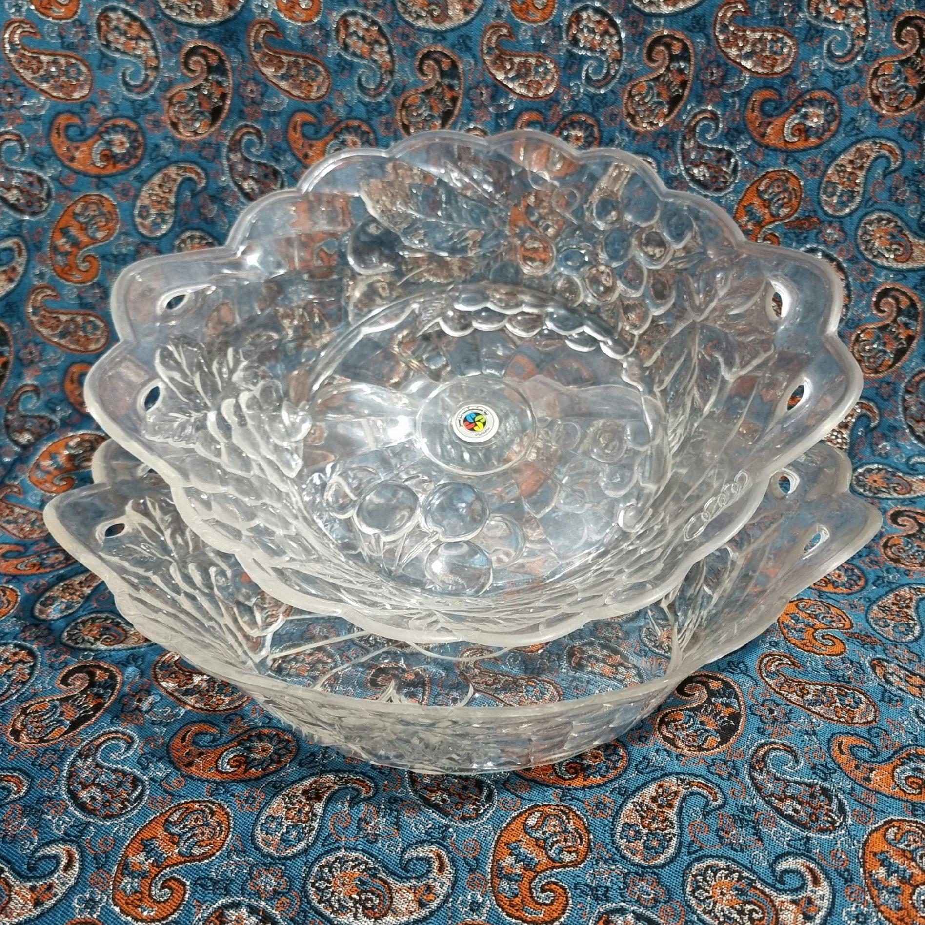جفت میوه خوری پلاستیکی مارک پلاستیک ناصر قدیمی بسیار زیبا نو اما دارای خط و خش مطابق تصویر