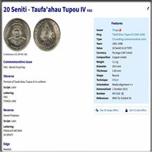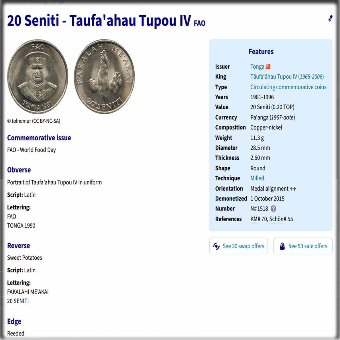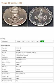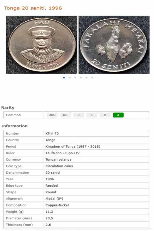 سکه 20 سنت تونگا 1996 FAO (نایاب) 11 گرم