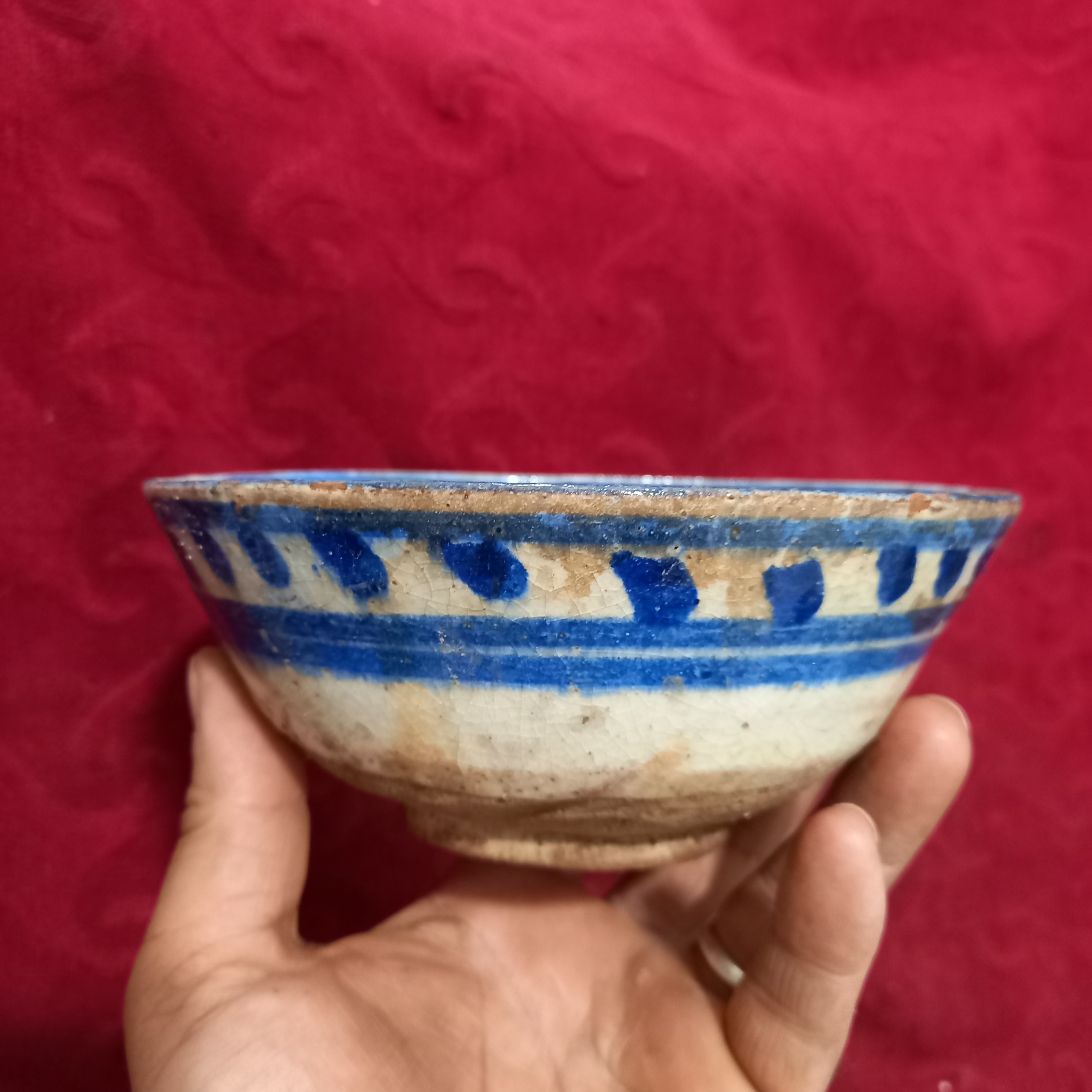 کاسه سفال 2رولعابدار کهنه قاجاری