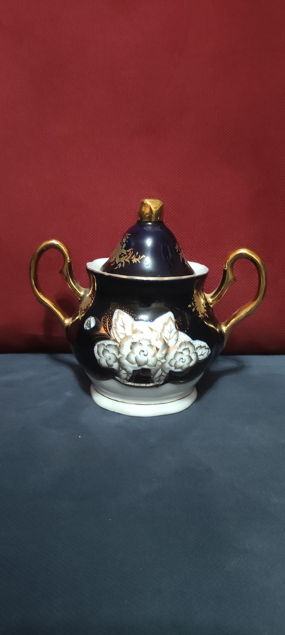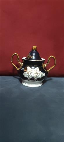 قندان طلایی سرمه ای گل برجسته کلکسیونی