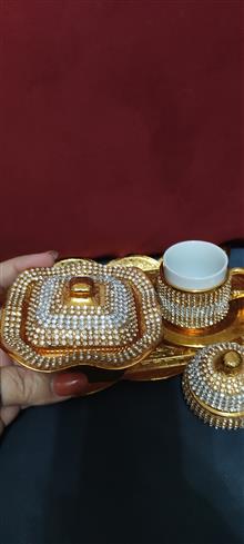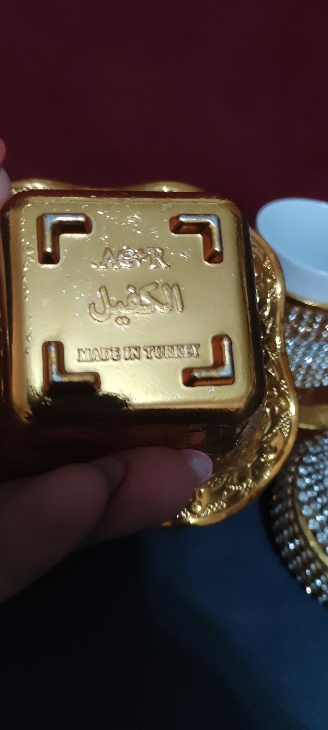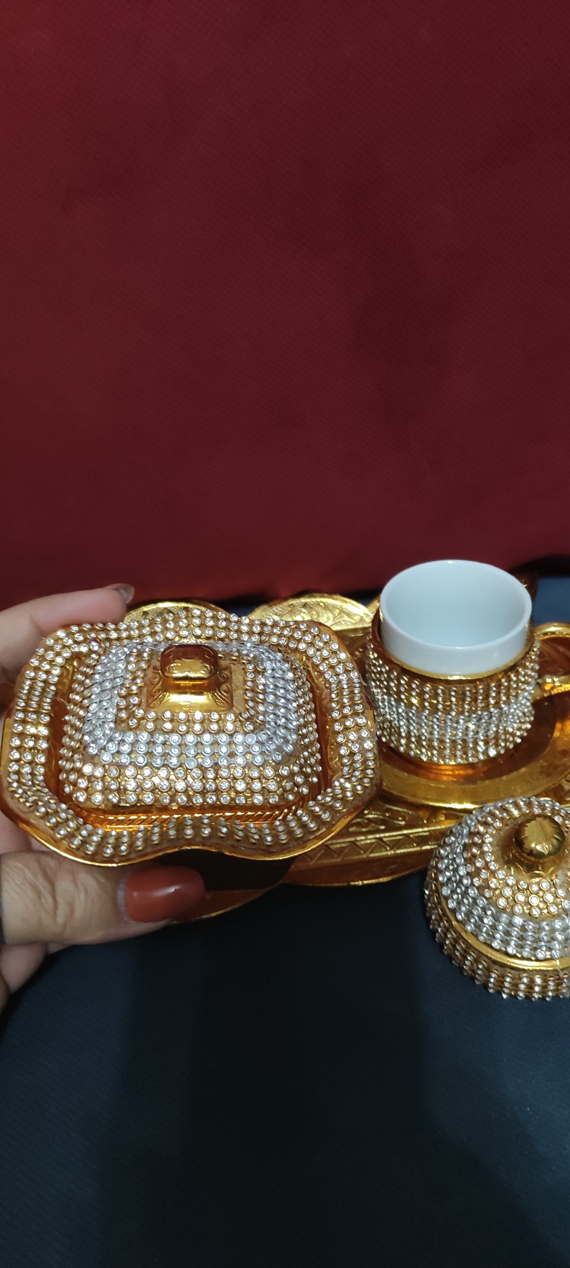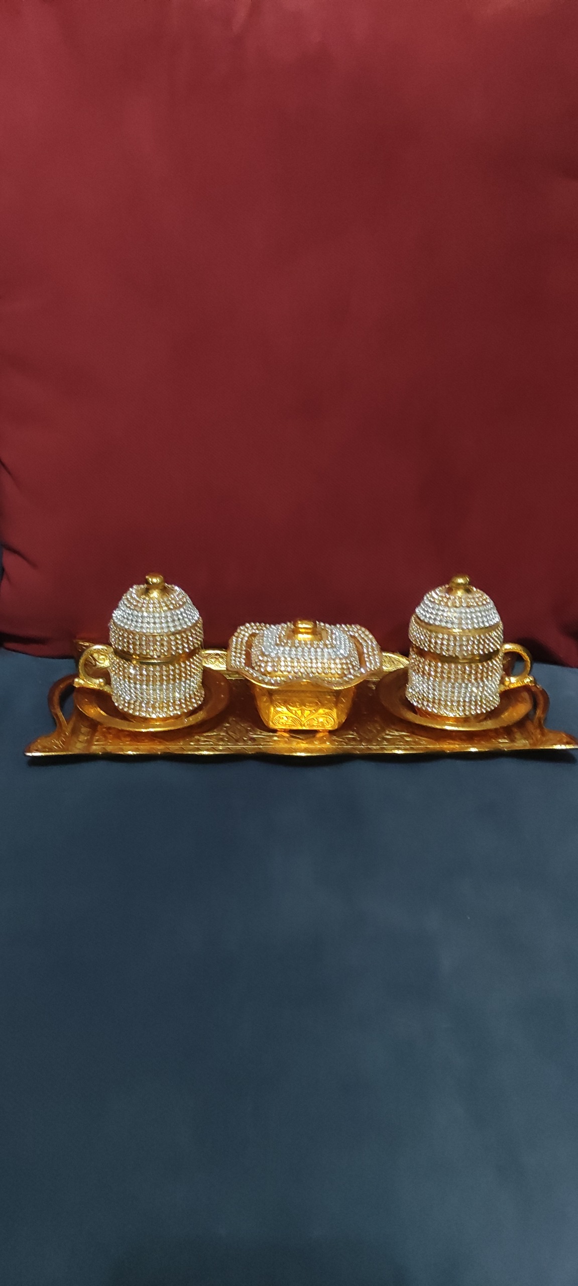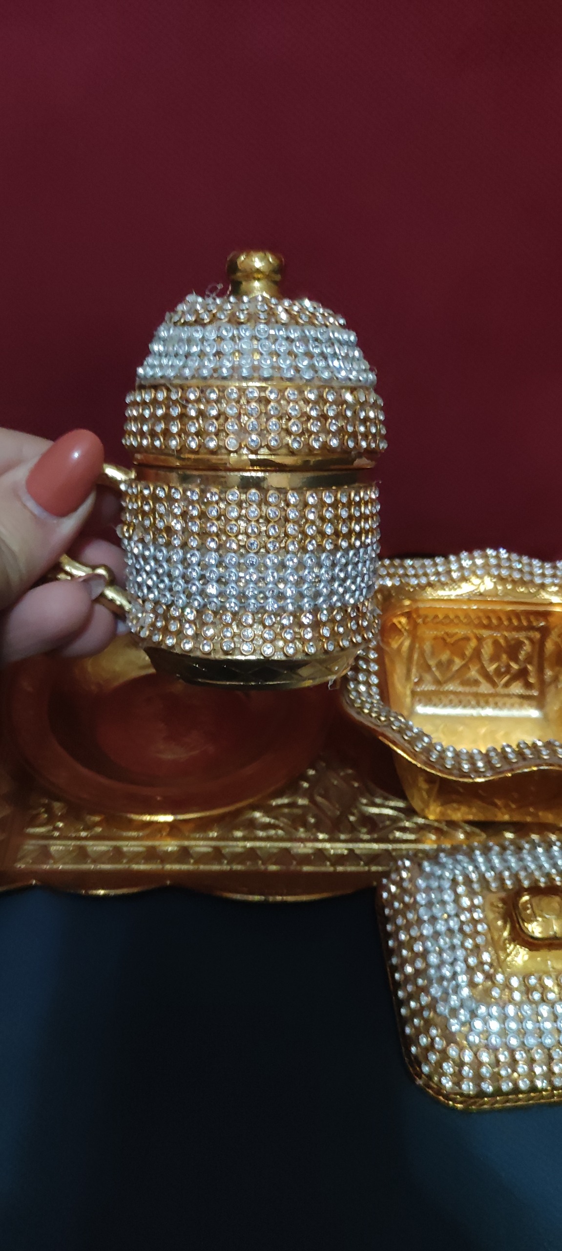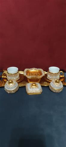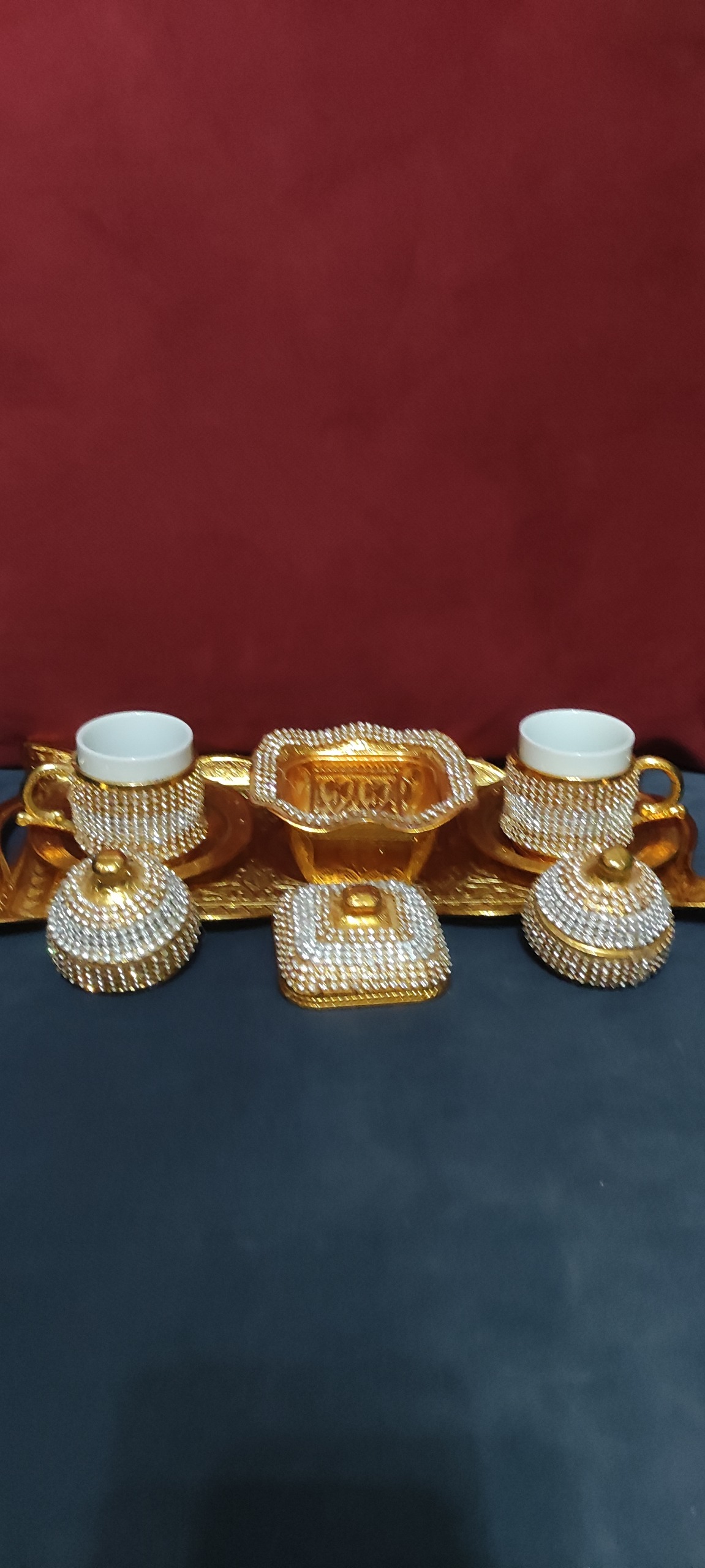 ست و سرویس قهوه خوری طلایی نگین کاری ساخت ترکیه کاری خاص کلکسیونی وآنتیک رنگ ثابت