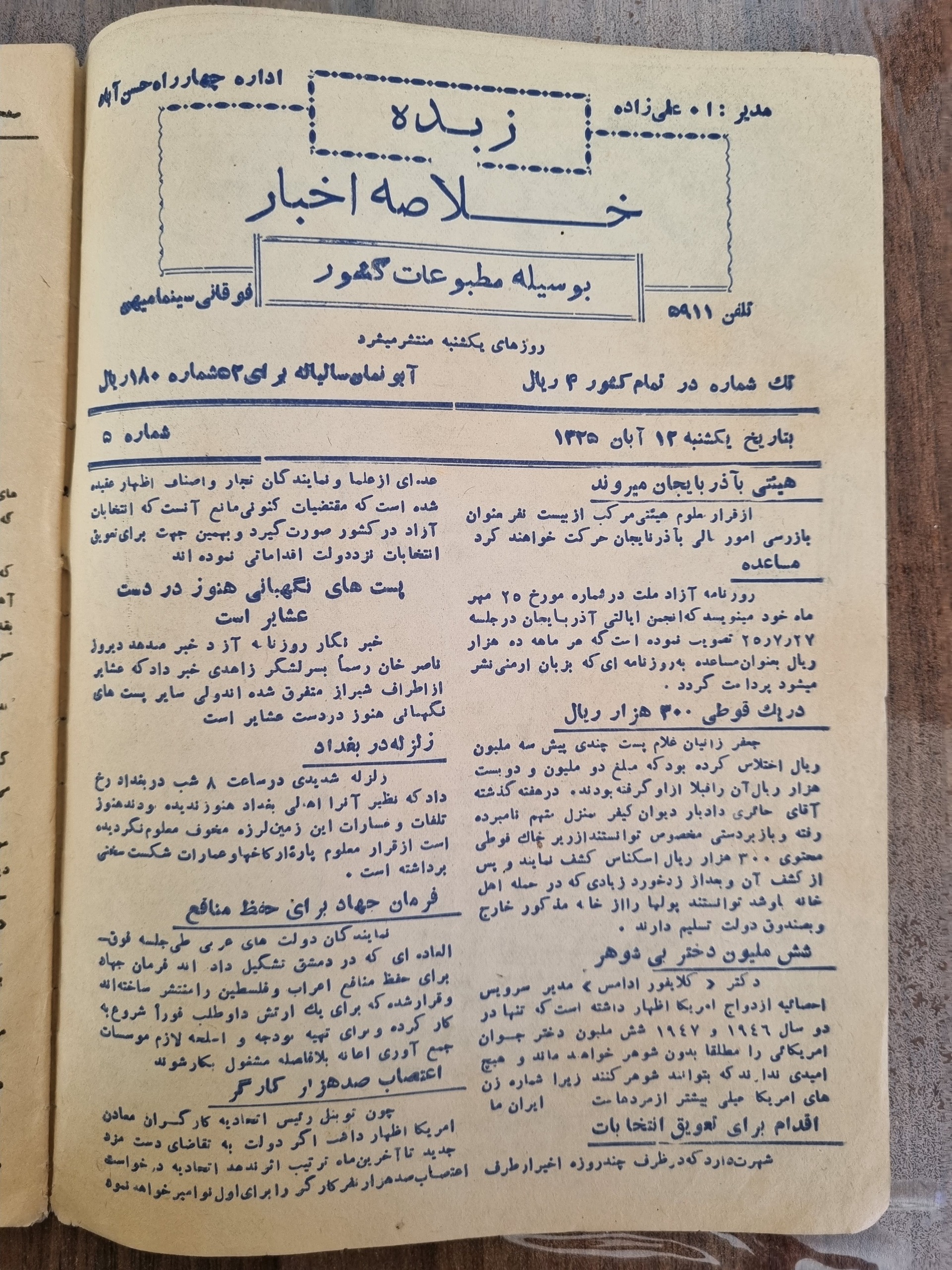 شماره 5، به تاریخ 1325