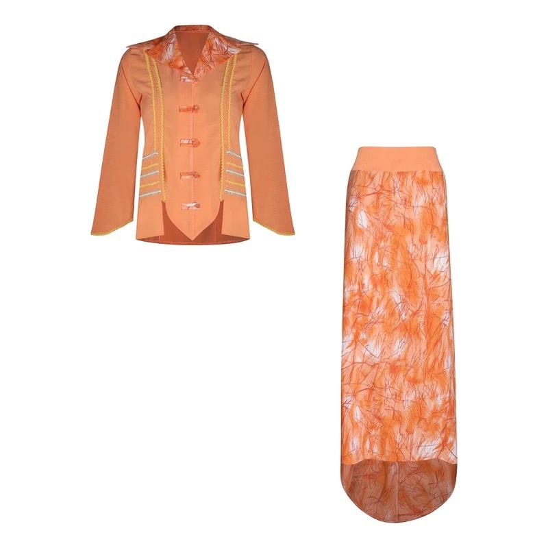 این ست کت و دامن دستدوز، از پارچه مجلسی و تمیز دوخته شده است. بلندی دامن 100 سانتیمتر و طول دنباله آن حدودا 30سانت میباشد.مناسب سایز اسمال تا 40 و 42 ظریف است. کمر دامن زیپ و سگک دارد. این ست مزون دوز، در تن سایه نمیزند و راحتی را برای شما ایجاد میکن