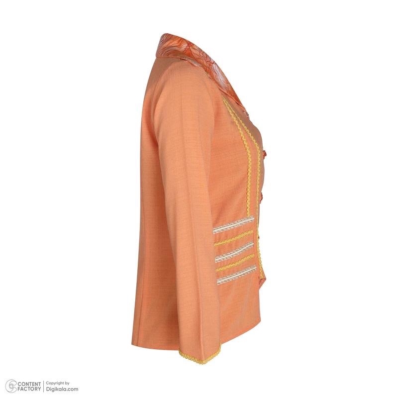 کت و دامن پشت دنباله دار بلند هلویی