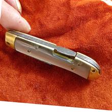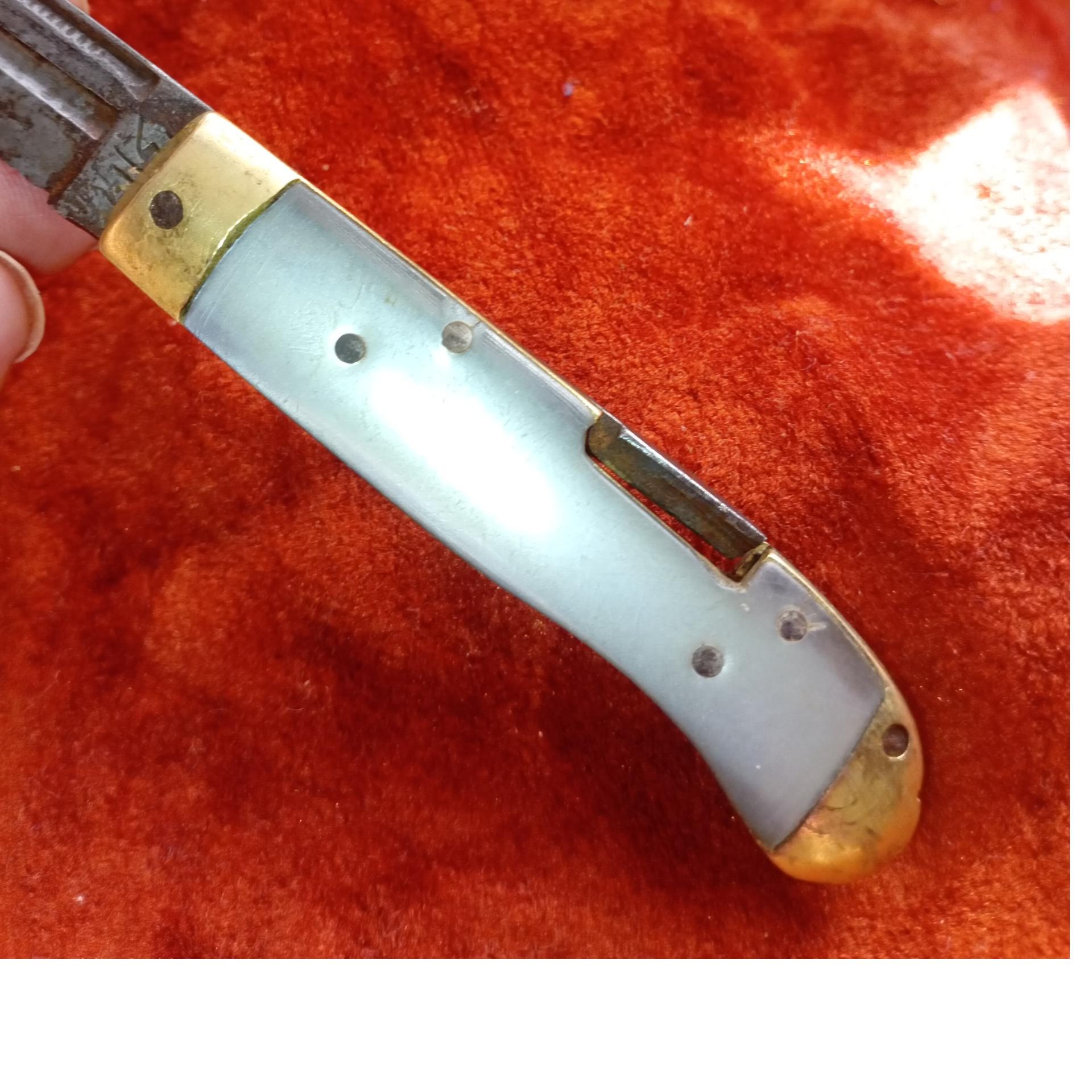 من اطلاع زیادی در مورد چاقو ندارم به نظر دسته صدف میاد و دور برنج طلائی و خودش با توجه به رنگ فلزاحتمالا فولاده از زوایای مختلف عکس گذاشتم کسانی که چاقو میشناسن حتما خودشون بهتر میدونن