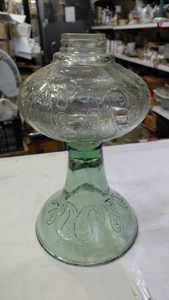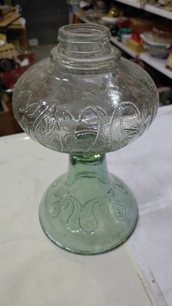 چراغ گردسوز شیشه ای قدیمی کاملا نونو فاقد موتور و فیتیله.ارتفاع 25 سانت.