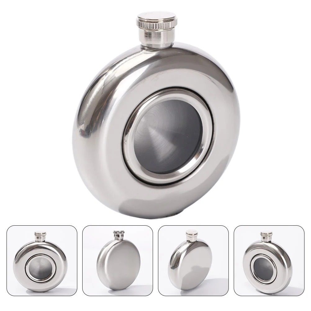 قمقمه استیل کتابی دایره ای وسط شیشه 5OZ