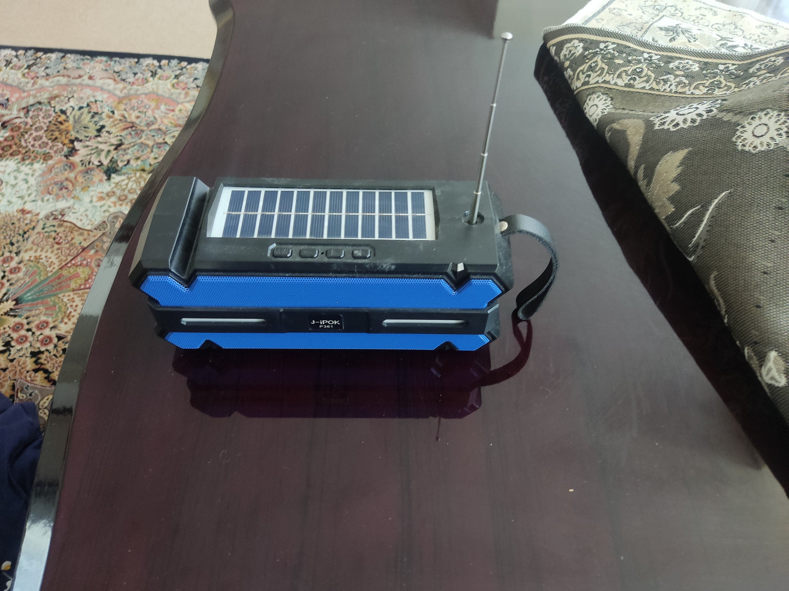 این اسپیکر با نور خورشید و شارژر موبایل شارژ میشود و جهت استفاده در منزل و مسافرت . کمپ و ... با کیفیت میباشد