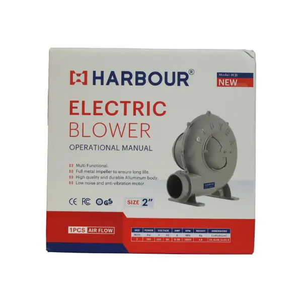 موتور کم صدا و بدون لرزش موتور قدرتمند 160 وات با فشار 310 پاسکال دارای دریچه تنظیم هوا بدنه مقاوم، ساخته شده از بهترین آلیاژ آلومینیوم سرعت هوای خروجی 3000 دور بر دقیقه پروانه تمام فلزی ایجاد جریان یکنواخت و پرقدرت همواره در تمام طول کار تولید باد با حجم و فشار بالا پایه های پهن باقابلیت نصب روی میز توان: 160 وات سرعت در حالت آزاد: 2800 دور در دقیقه کشور جنس سیم پیچ: 100 درصد مس قطر خروجی: 2 اینچ