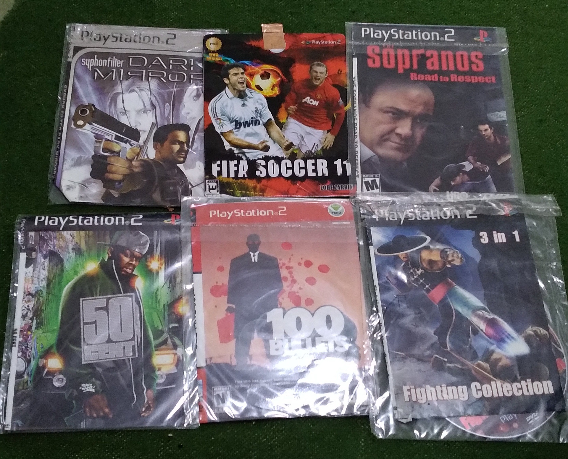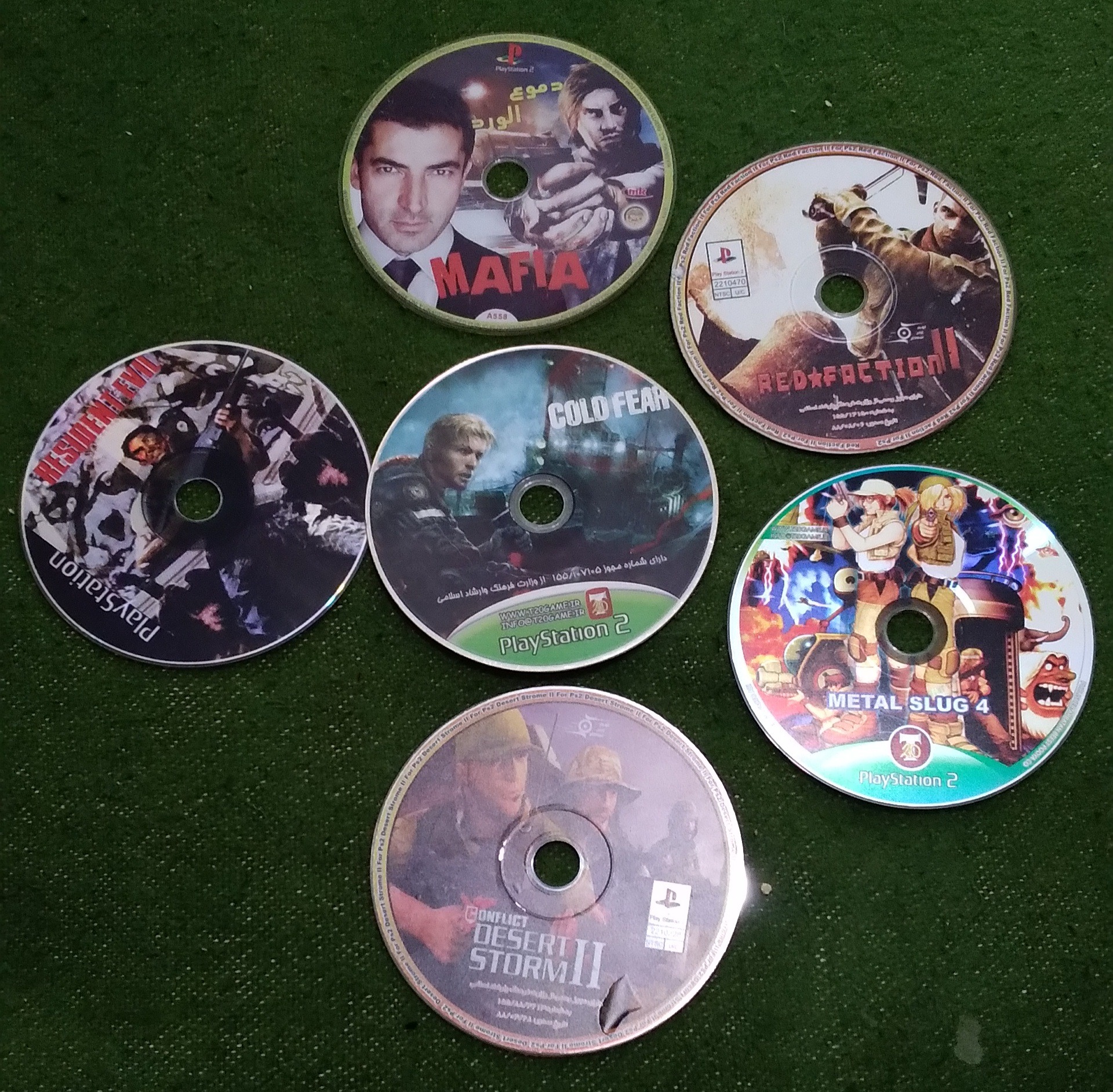 16 عدد بازی سونی2 یا ps2 رزیدنت اویل تیکن فیفتی سنت سوپرانوز وان پیس متال فیفا 11 و غیره که تو عکس معلومه