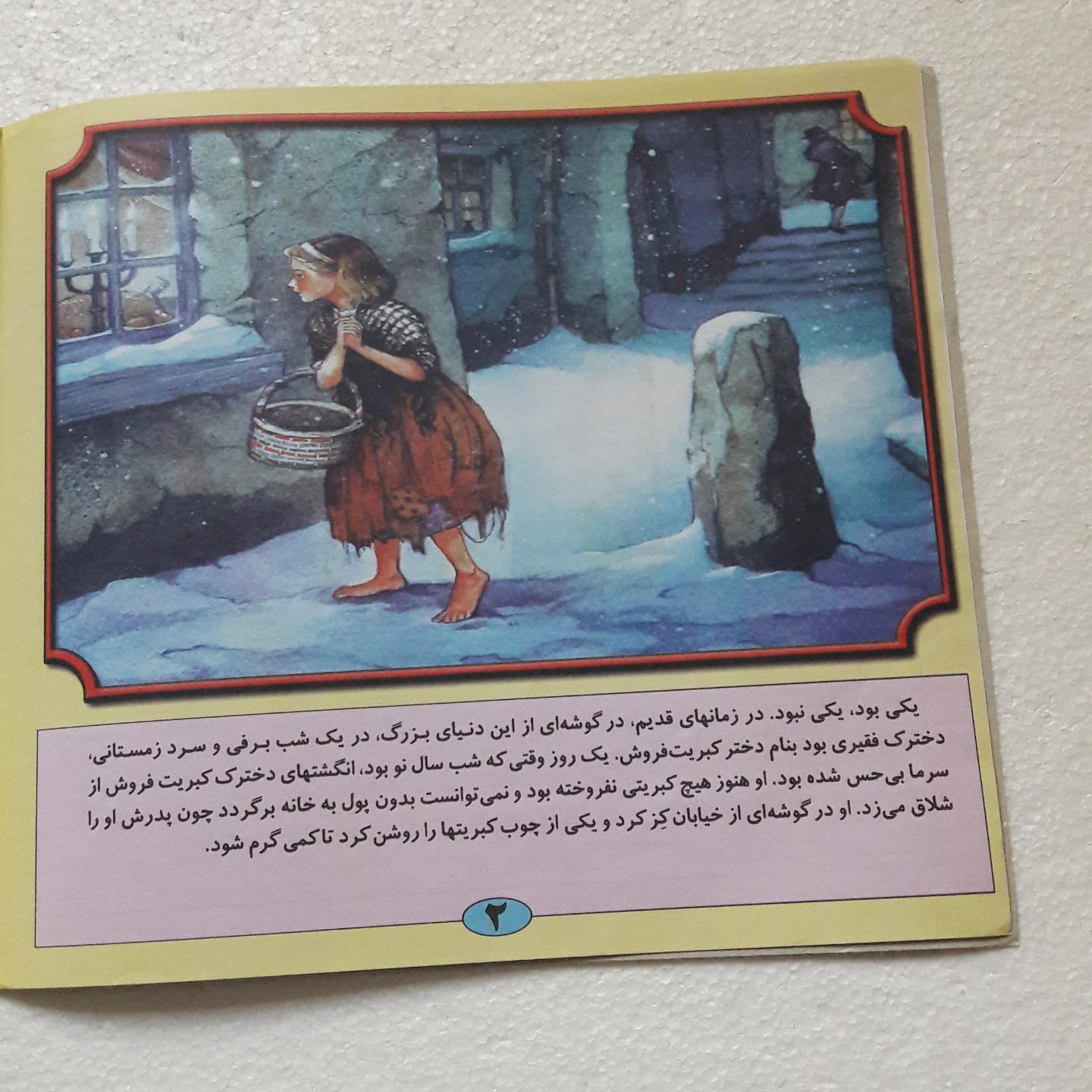 کتاب دختر کبریت فروش1384 بدون کسری است.داخل جلدها اثر لک نوارچسب دارد.کتاب شامل دو داستان است.با قطع خشتی12صفحه می باشد.