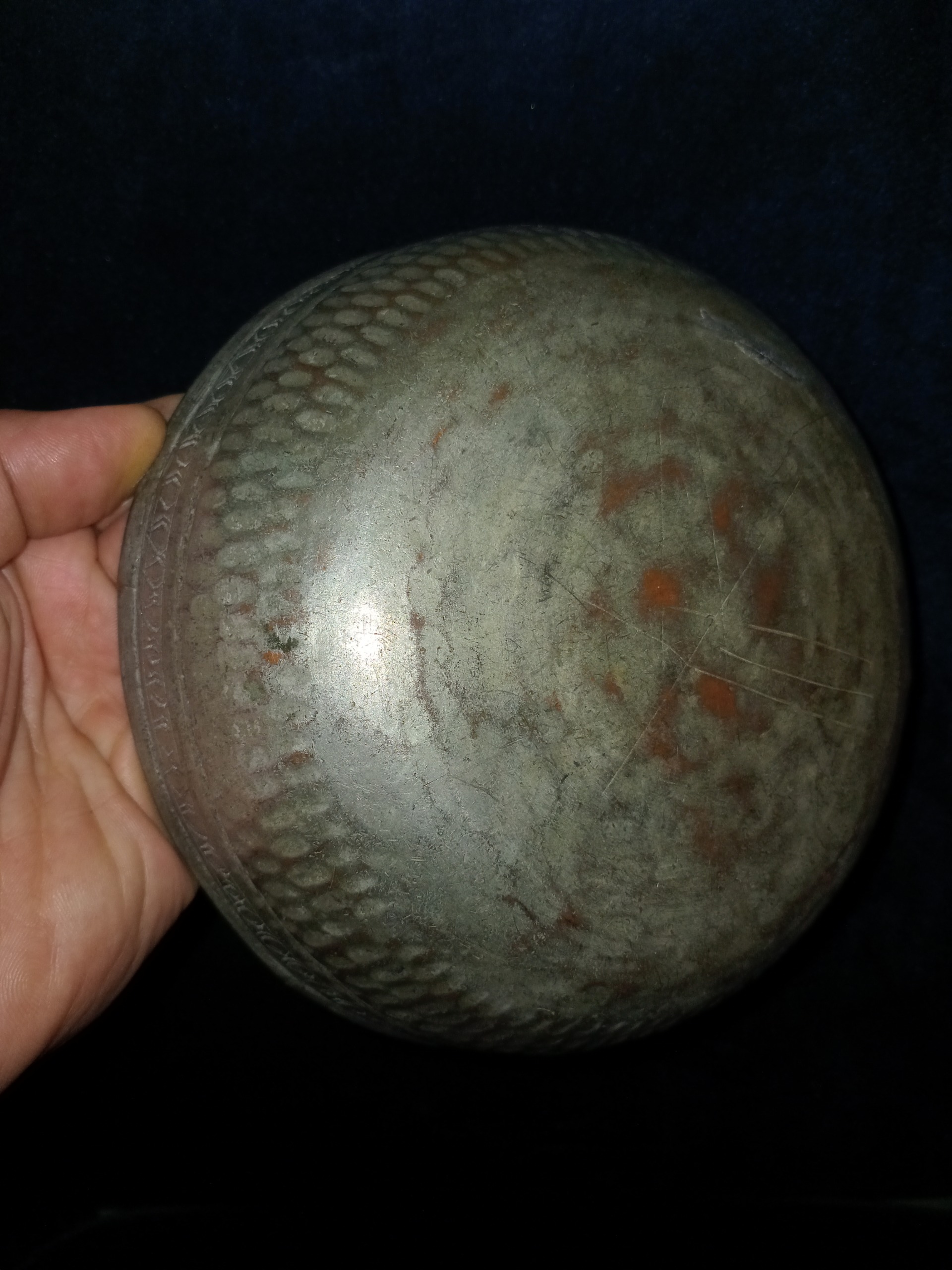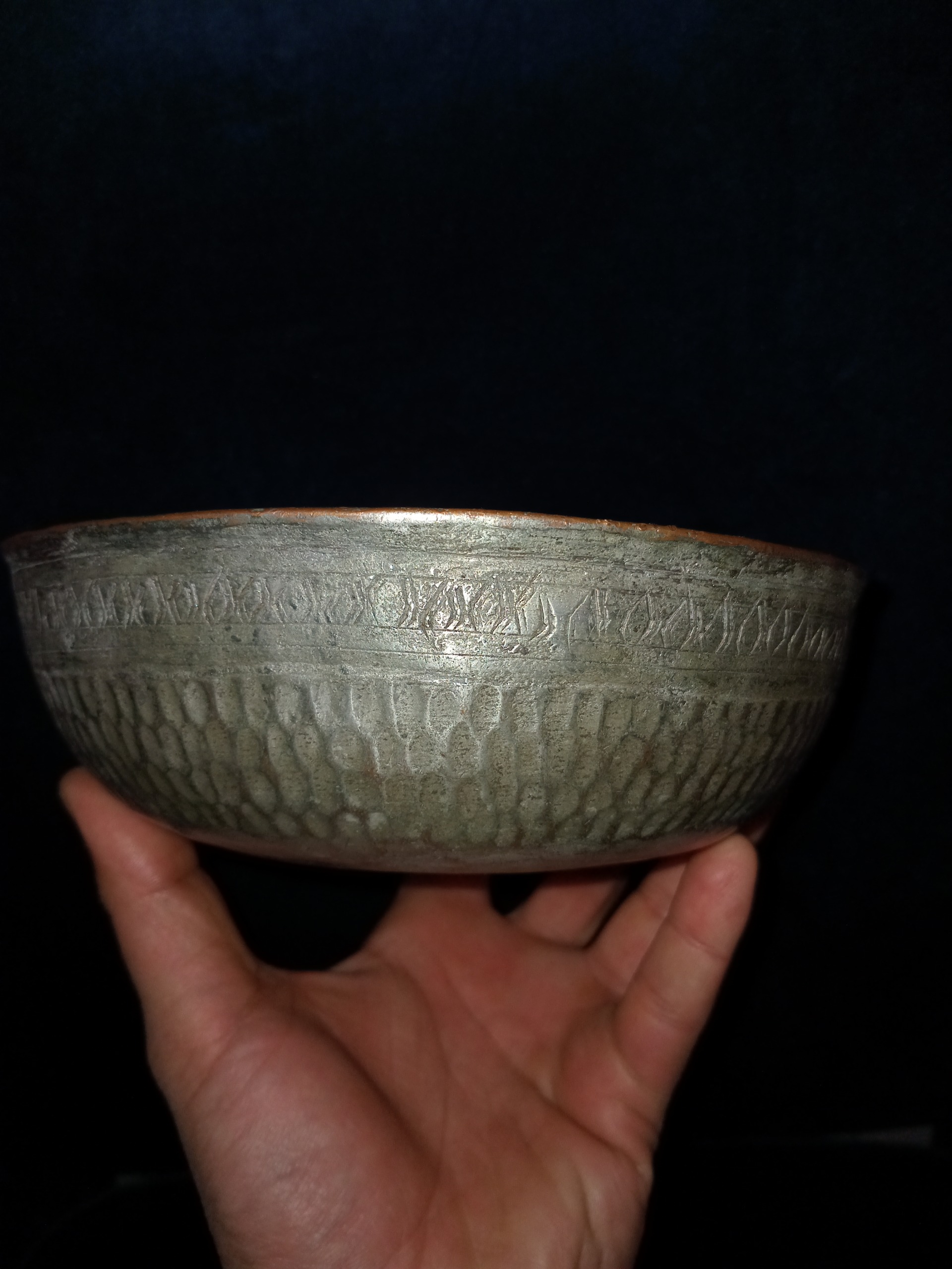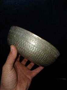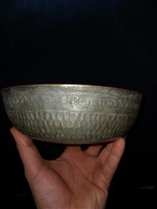 کاسه مسی چکشی کهنه قاجاری بکر و سلامت سوهانکاری زیبا قلم داخل و بیرون کهنه قاجاری.بی عیب.بیایین بخرید کار عالیه