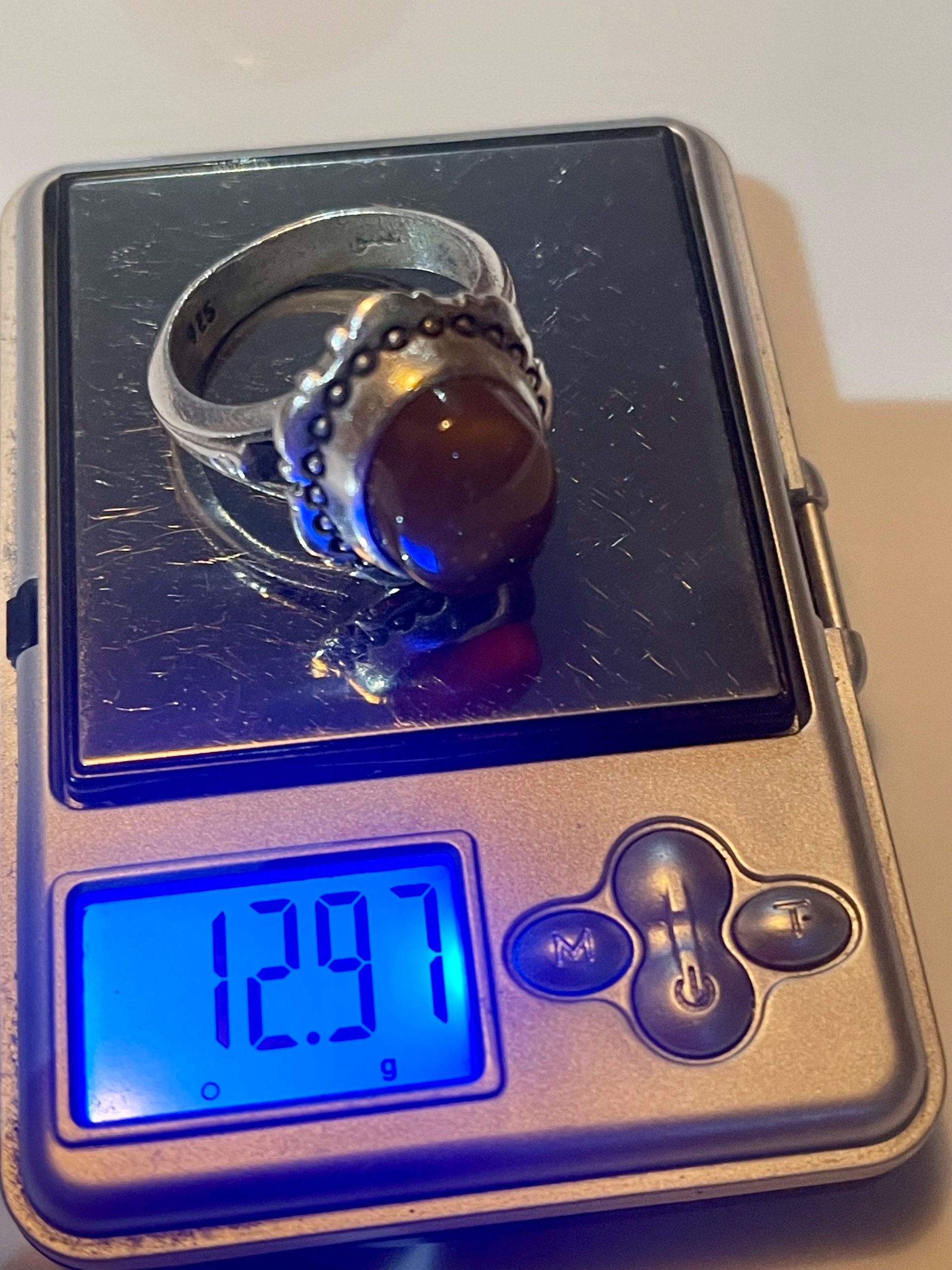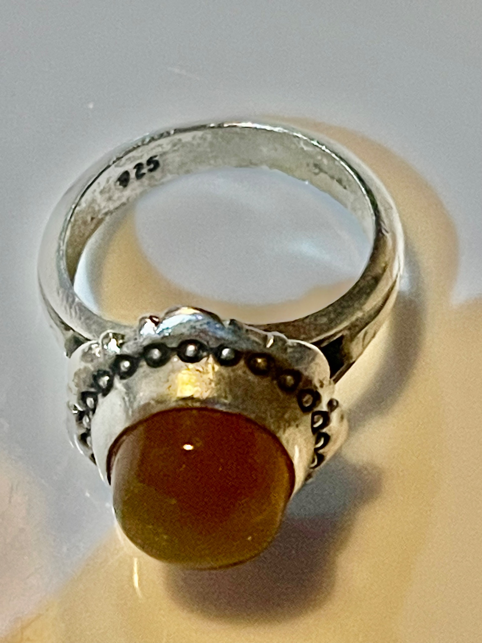 انگشتر عقیق زرد قدیمی کلکسیونی نقره حدود 13 گرم با عیار نقره 925