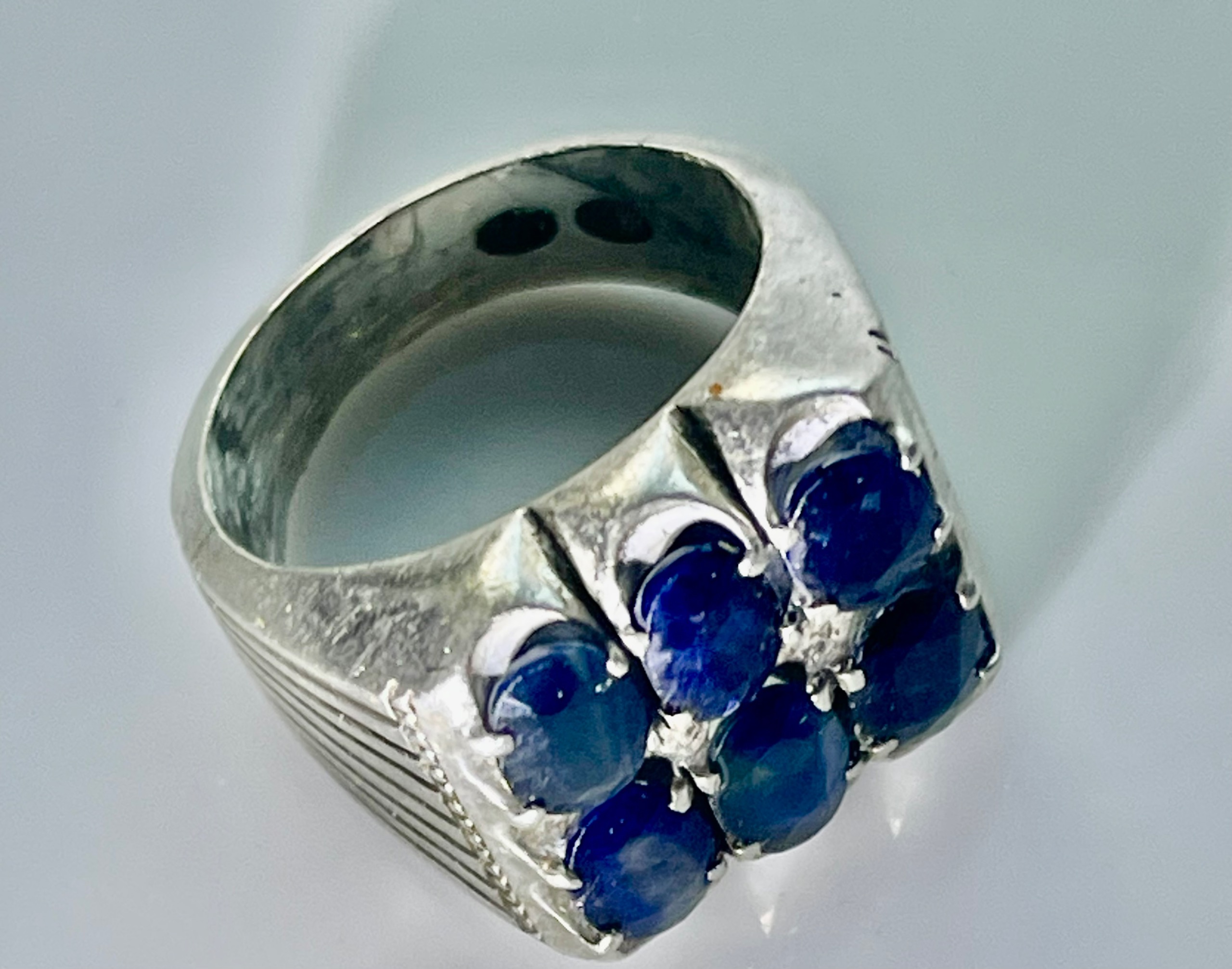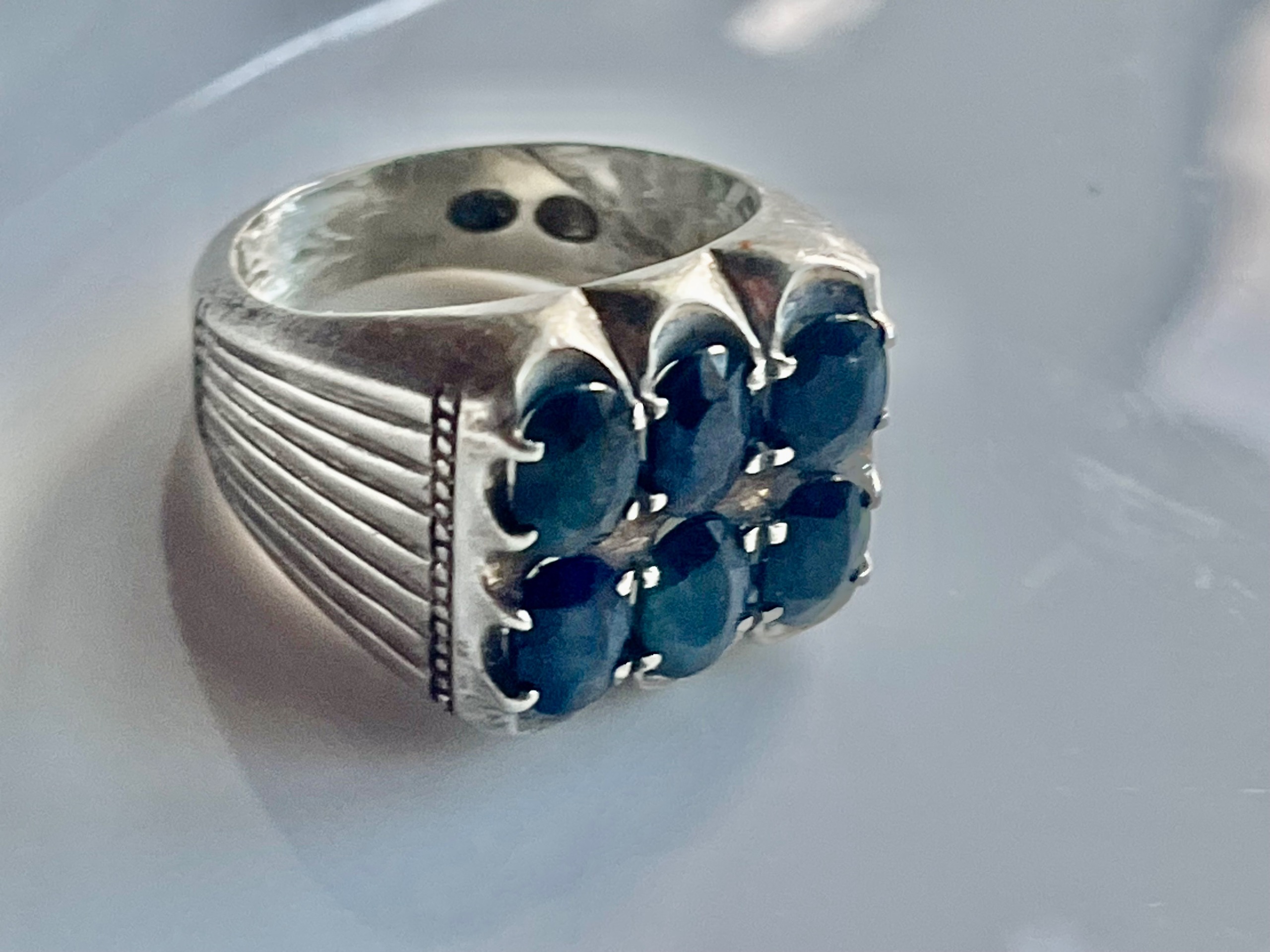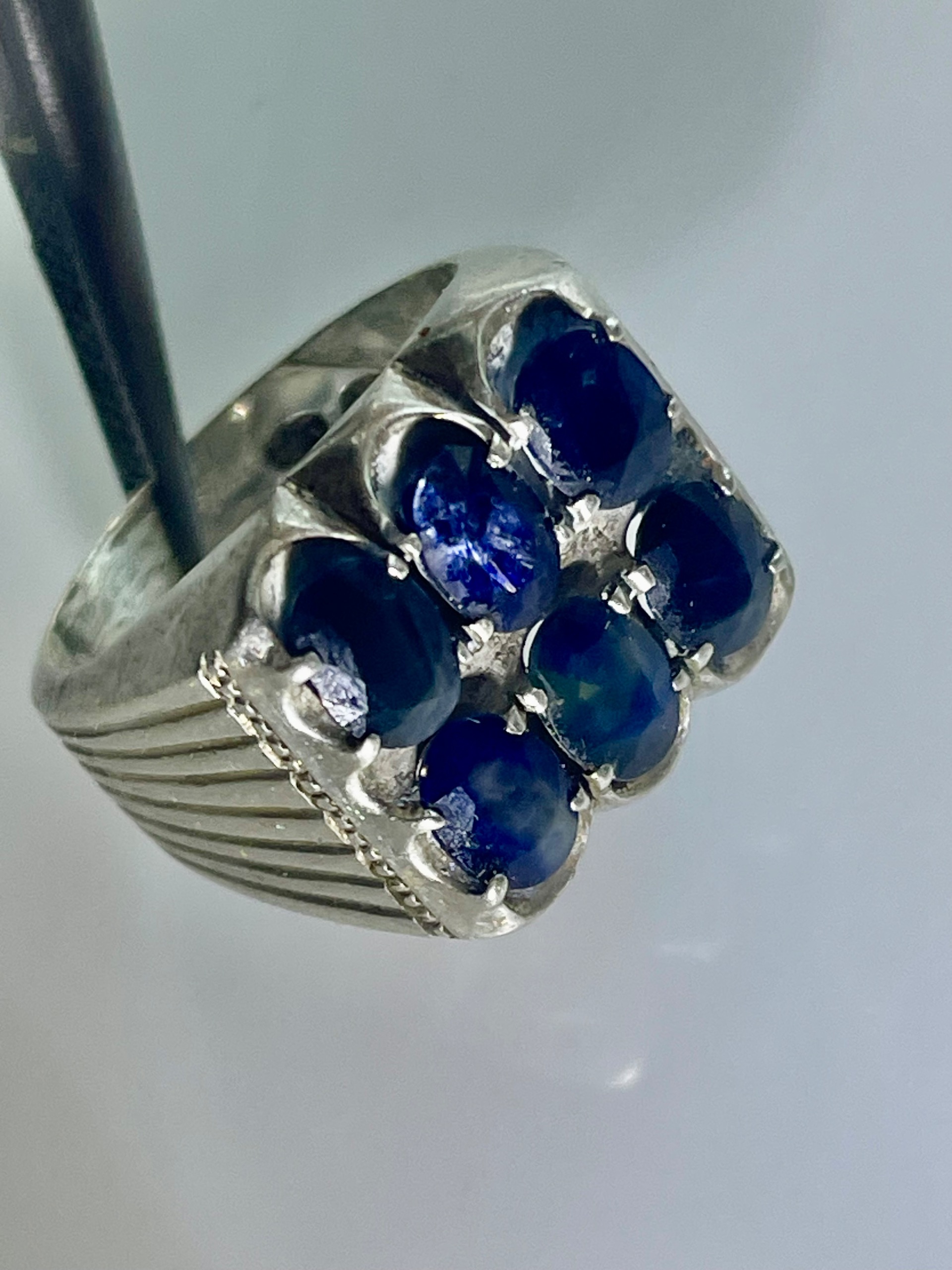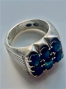 فروش انگشتر یاقوت کبود کلکسیونی پر کار دست ساز نقره به وزن 17 گرم زیبا