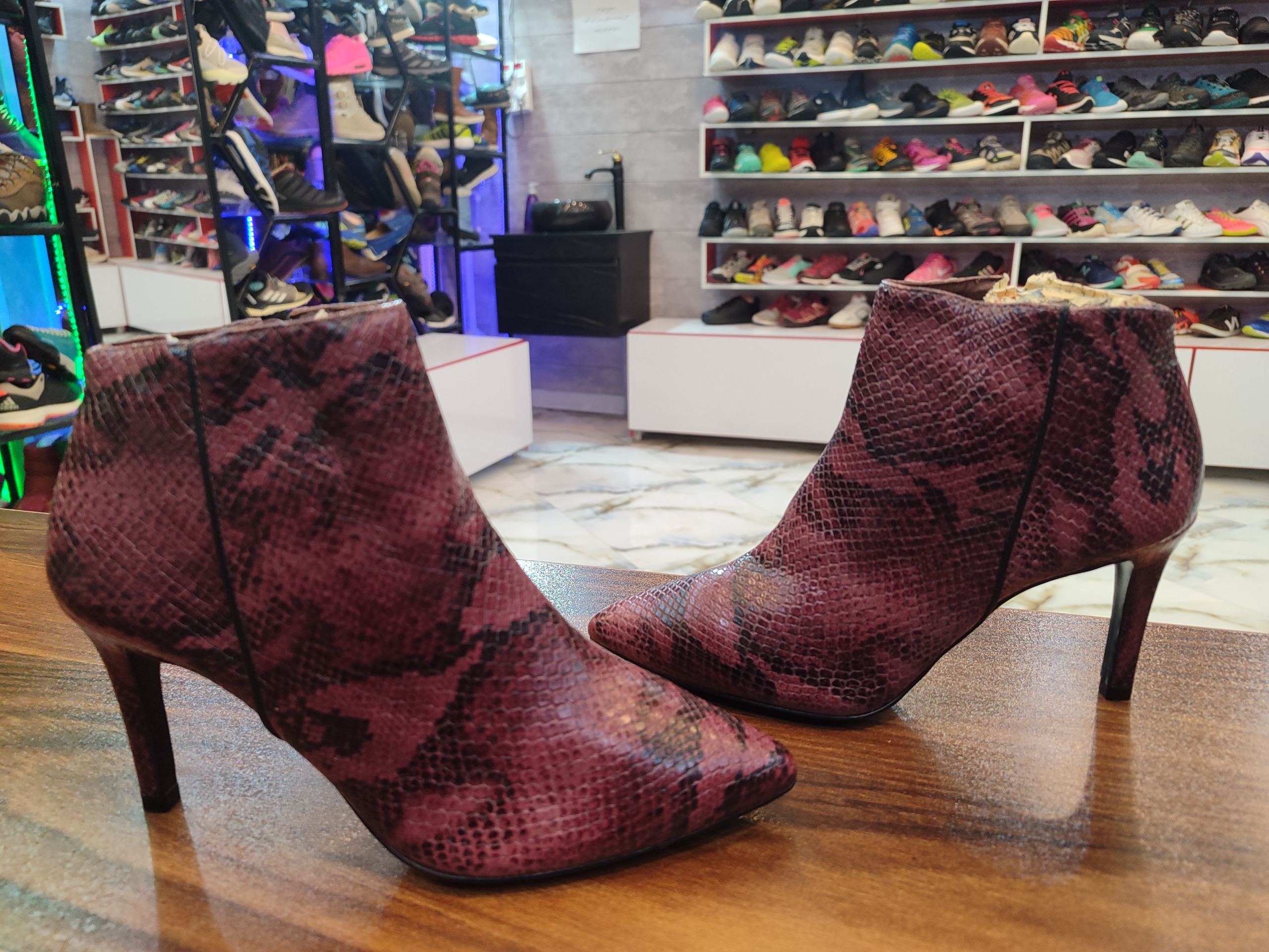 بوت زنانه اورجینال خارجی تمام چرم پوست ماری ساخت برزیل با زیره اختصاصی با ضمانت اصل بودن بسیار نرم و راحت مناسب روزمره. کار با ضمانت اورجینال تقدیم میگردد. لطفا جهت دیدن کارای بیشتر از طریق گوگل گالری کفش خاص خرم اباد با لوگوی مشکی دنبال کنید قیمت زیرش 130یورو حک شده