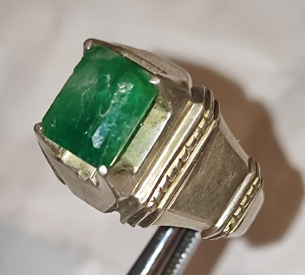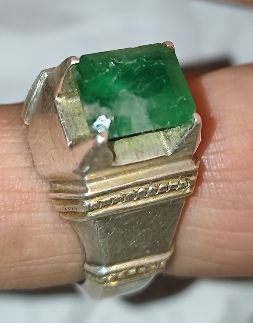 انگشتر زمرد پنجشیر اصل نگین نسبتا درست و ضخیم میباشد و حداقل بالای پنج قیراط وزن دارد