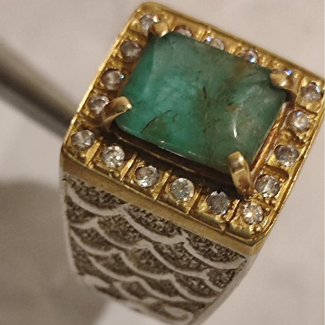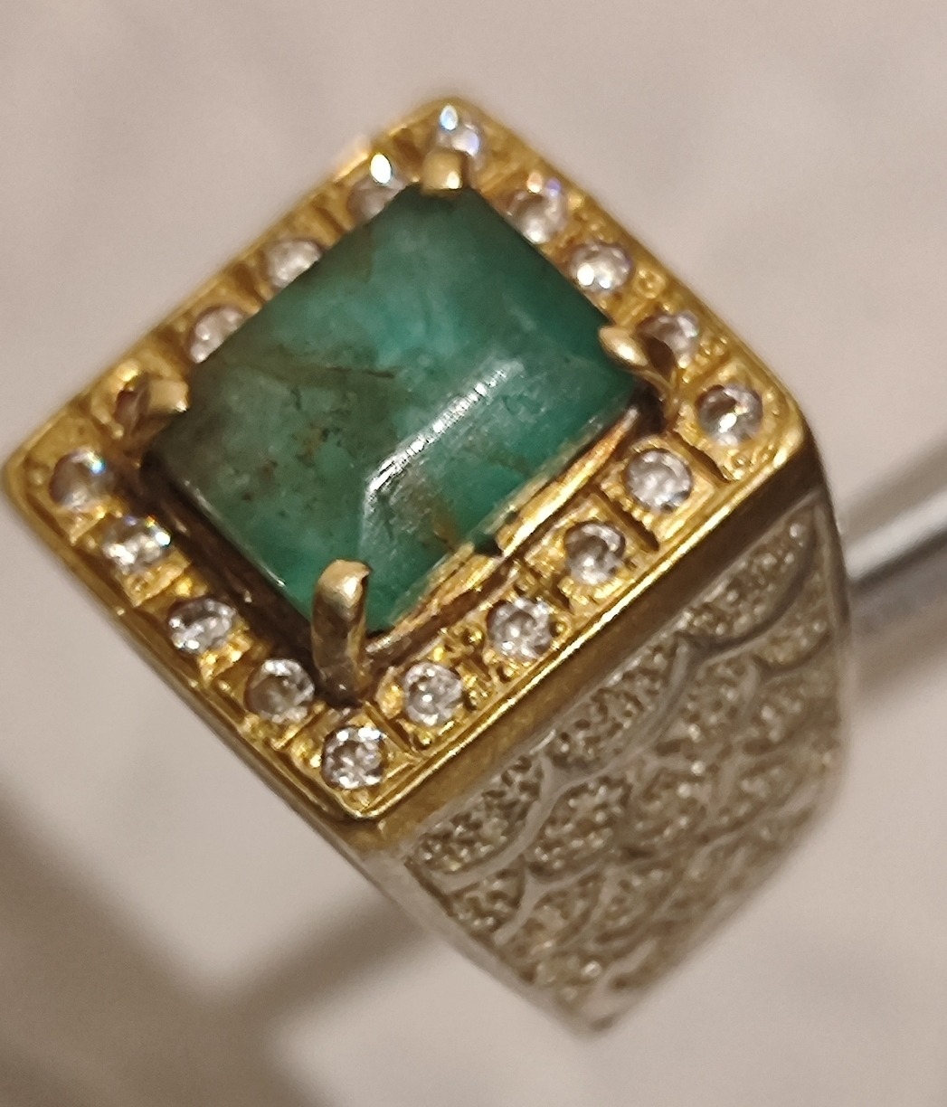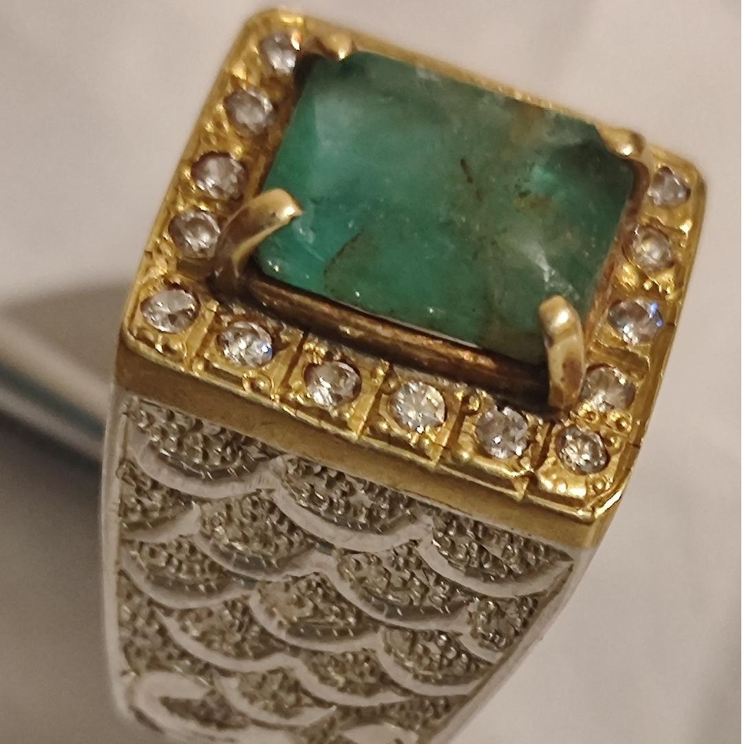 انگشتر زمرد پنجشیر اصل با رکاب قلمکاری و مخراجکاری مطابق تصاویر