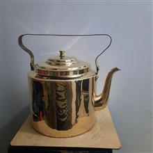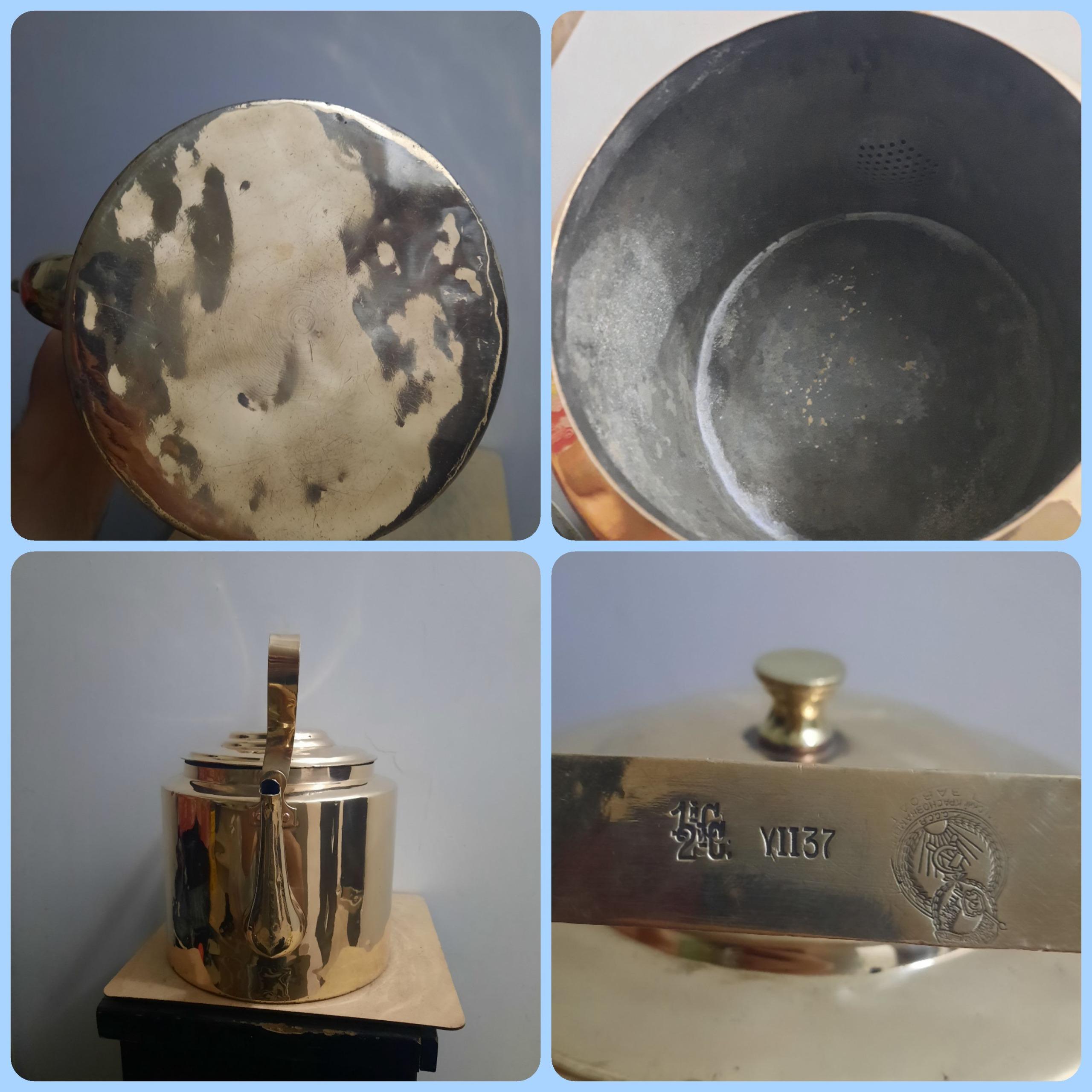 کتری روسی مسوار فوق العاده کم نظیر و تکرار نشدنی  سایز بزرگ اندازه 6 لیتری ارتفاع تا درب 25 سانت دور بدنه 73 سانت دارای مهرهای روسی روی دسته واقعا میشه گفت کم نظیر به خاطر مسواک بودن جنسش توصیح بدون سوراخ و تعمیری فقط روی بدنه غری و دررفتگی های ریز هست به شرط اصل روسی و قدیمی