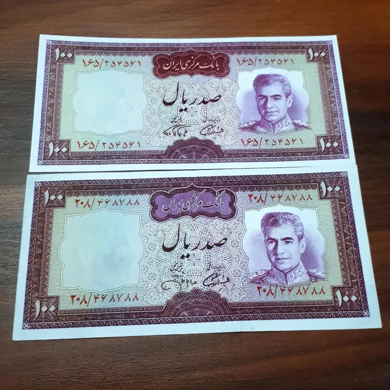 یکی از اسکناسها ارور کادر دارد و امضای ارزشمند فرمانروایان، یکی ضمینه بالا قرمز و دیگری ضمینه بالا سفید، در حد بانکی، فروش مطابق تصویر اسکناس
