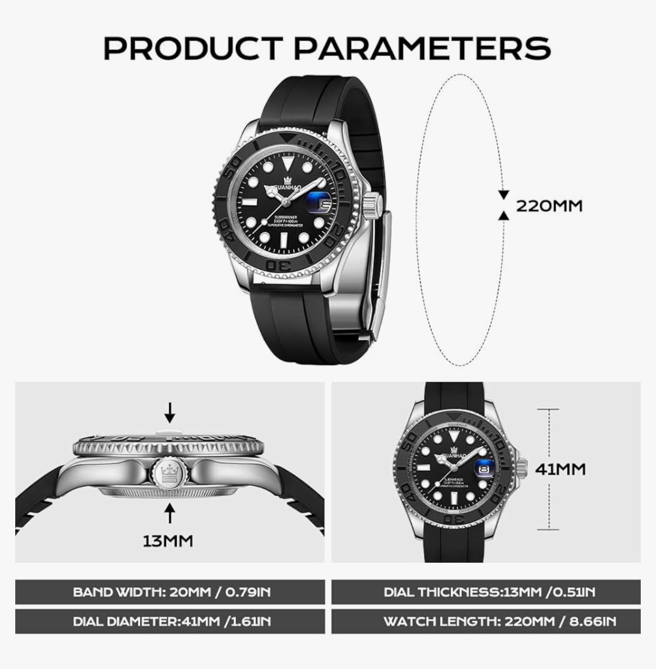 گوانهائو: قاب استیل ضد زنگ دارای انحناهای صافی در کناره است که بسیار زیباست و قاب کناری صیقلی و براق آن، نوری خیرهکننده از خود ساطع میکند. دایره کلمات سرامیکی منحصر به فرد، دستاورد جدیدی از فناوری و زیباییشناسی است، کریستال یاقوت کبود مصنوعی، نه تنها