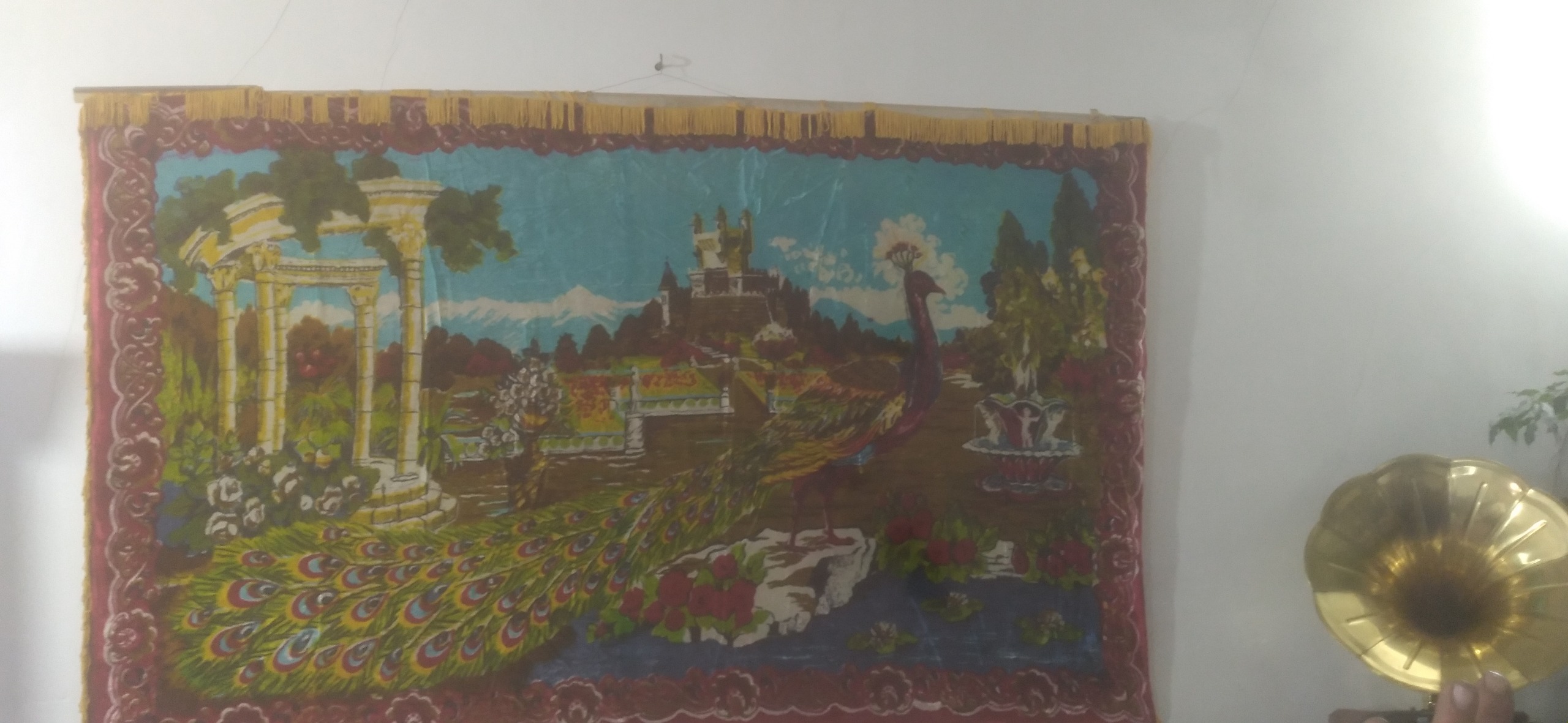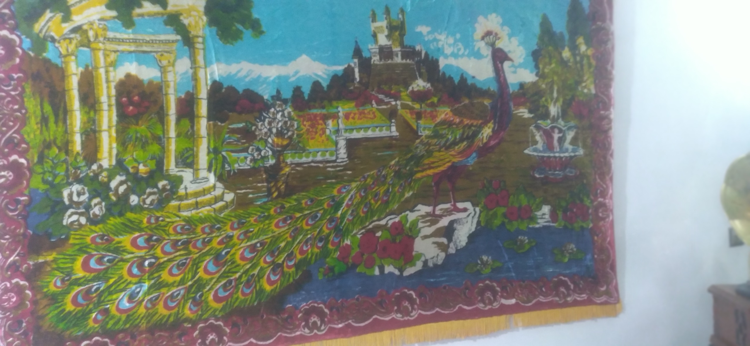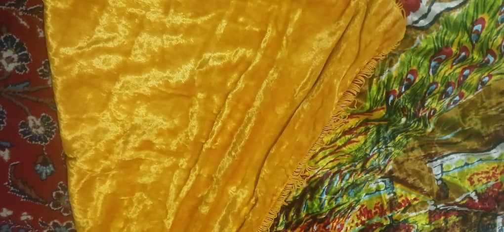 یک عدد پرده دیوارکوب قدیمی معروف به پرده شامی جنس پارچه مخمل میباشد البته مخمل عالی با کیفیت بالا این پرده دارای آستر میباشد که آستر آن نیز از جنس مخمل ا کیفیت بالا میباشد هر چقدر از زیبایی این پرده بگم کمه باید خودتون از نزدیک ببینید بسیار زیبا شیک در ضمن پرده دارای قدمت میباشد تا به حال هیچگونه استفادهای نشده برای اولین بار برای انداختن عکس برای فروش به دیوار ویزان کردهایم قدمت این پرده حدوداً بین 70 تا 90 سال میباشد این پرده ساخت کشور سوریه میباشد