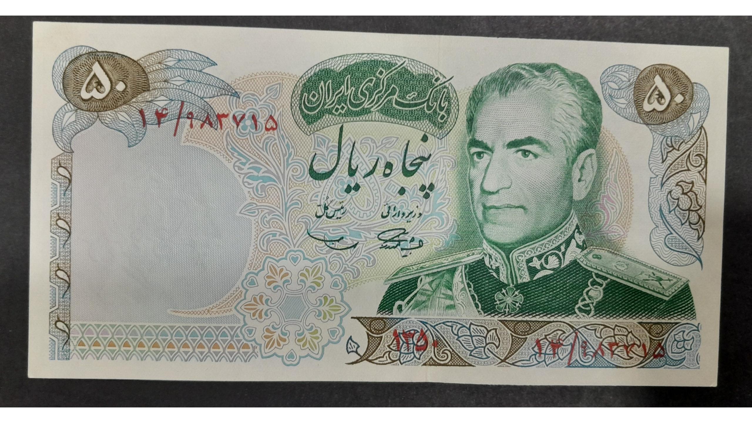 تک 50 ریال  محمدرضاشاه آموزگار سمیعی بتاریخ 1350
