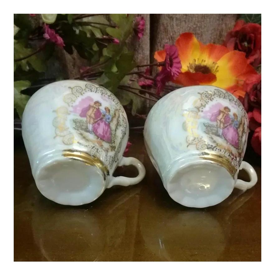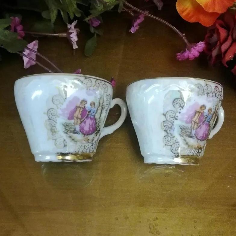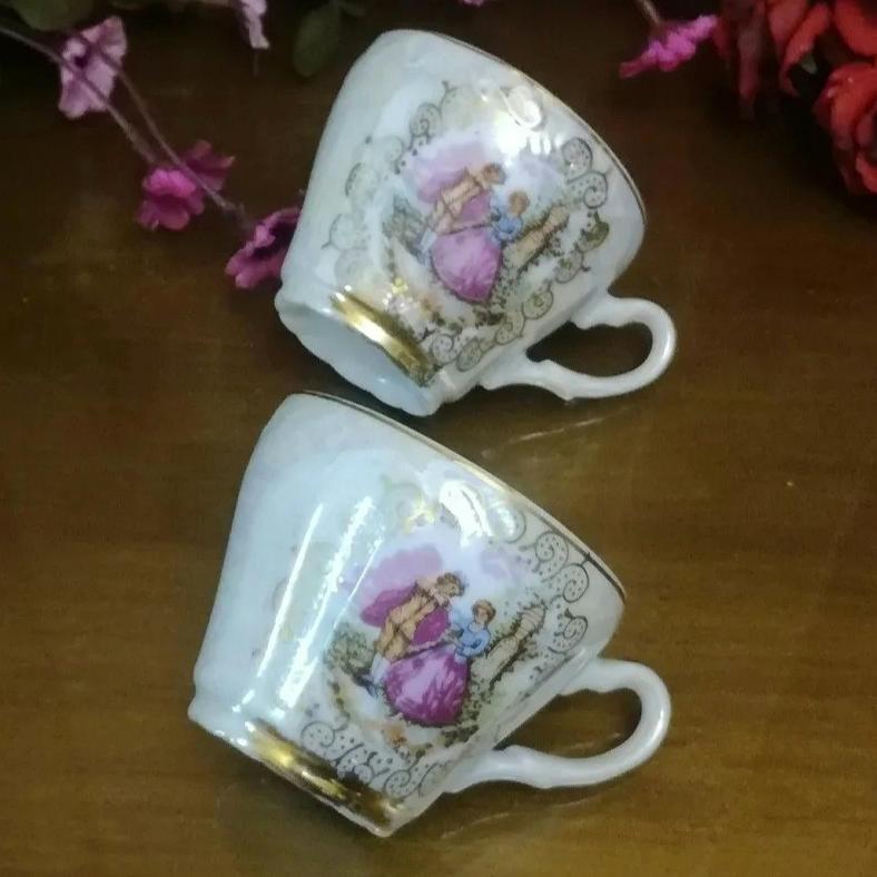2عدد فنجان تک قهوه خوری قدیمی دنسی اروپایی بسیار زیبا.کشورهای اروپایی فقط در دوران جنگ جهانی محصولات بدون مارک تولید میکردند تا بتوانند کالاهای خودرا درهمه کشورها بفروش برسانند.2عدد از این فنجان موجود است وقیمت درج شده برای 1عدد میباشد.