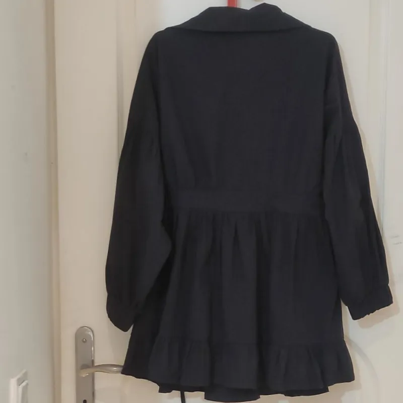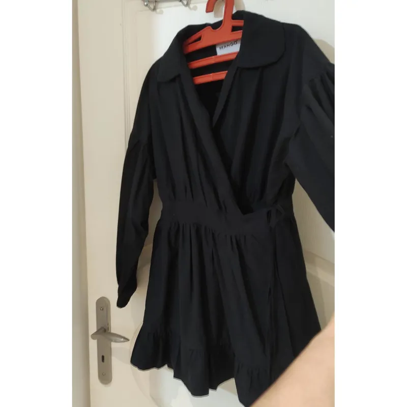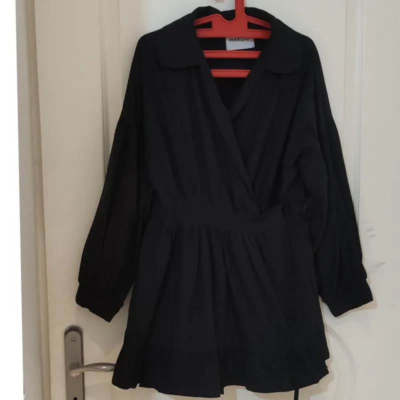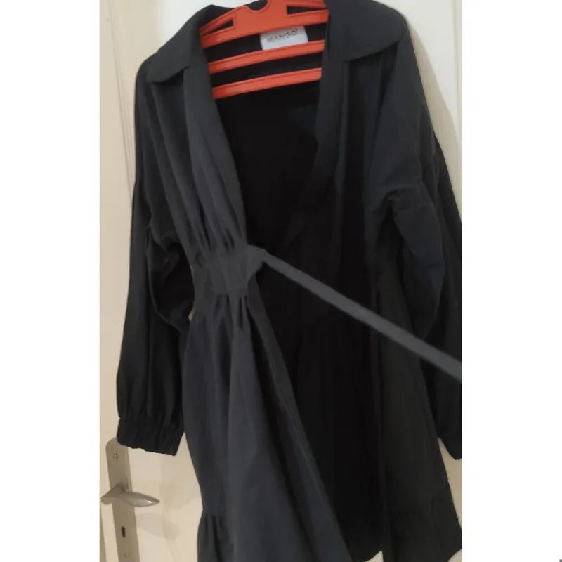 مانتو عروسکی برند منگو در حدنو،جنس عالی .چون رنگش مشکی هست تو عکس مدلش بخوبی مشخص نشد،مجبور شدم فلش بزنم،رنگش کاملا مشکیه، سمت چپ جلو با بند به پهلوی سمت راست مق گره زده میشه وسمت راست جلو میاد روش وبه بند پهلوی سمت راست گره میخوره،تنخورش عالیه