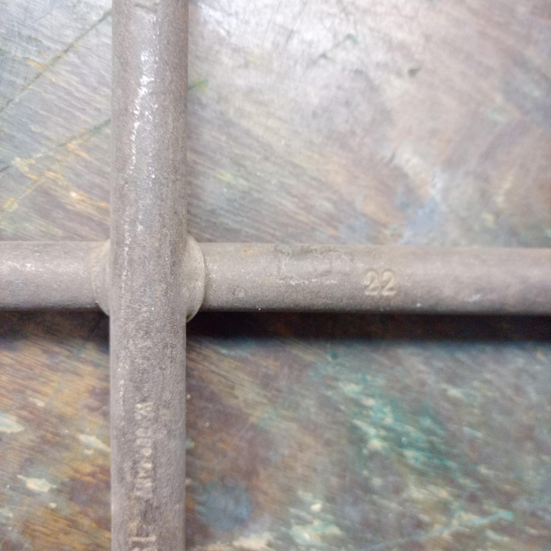 آچار چرخ چهارپر.ساخت آلمان غربی.قدمت نزدیک پنجاه سال.در حد نو و بدون استفاده.زبانه های پیچ گیر همگی سالم و دست نخورده هستند و گشاد یا لب پر نشده اند.یک زبانه اش سایز اینچی دارد و سه زبانه دیگر متریک هستند.