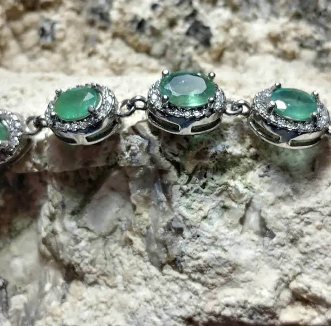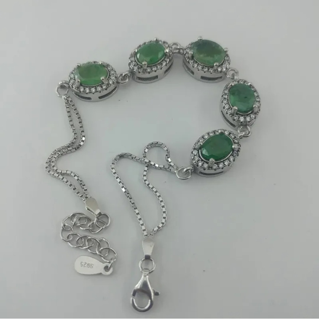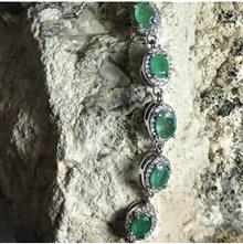 دستبند نقره جواهر آبکاری طلا سفید زمرد طبیعی