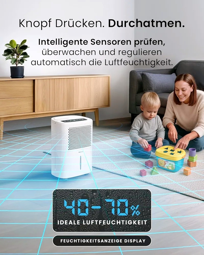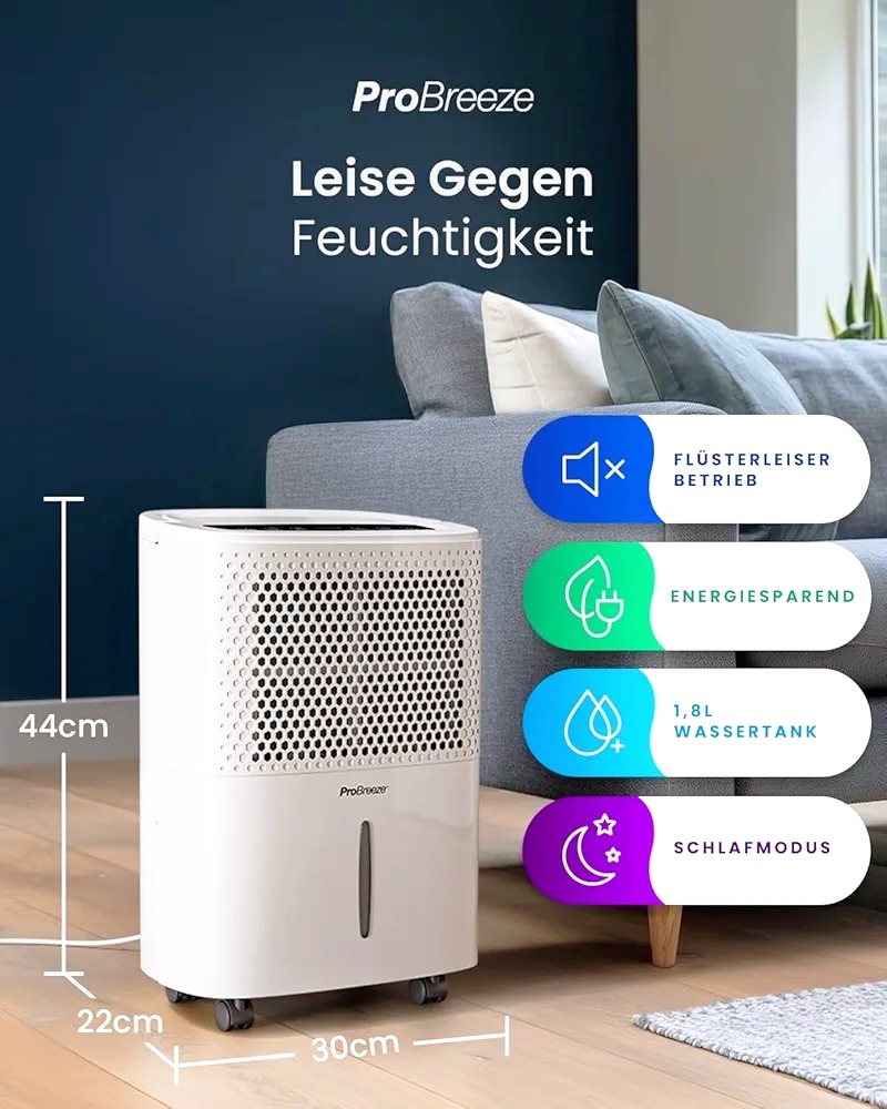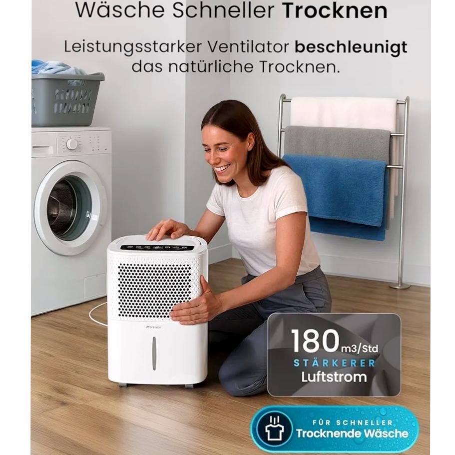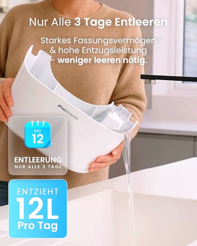 این رطوبتگیر کاملاً جدید Pro Breeze به سرعت و به طور مؤثر رطوبت، نم و کپک را از هوا حذف میکند. این دستگاه با یک کمپرسور داخلی با کارایی بالا کار میکند تا روزانه تا 12 لیتر رطوبت را از بین ببرد. این دستگاه برای استفاده در فضاهای بزرگ با مشکلات رطوبت دائمی ایدهآل است و برای دورههای طولانیتر استفاده، شلنگی برای تخلیه مداوم آب در نظر گرفته شده است.