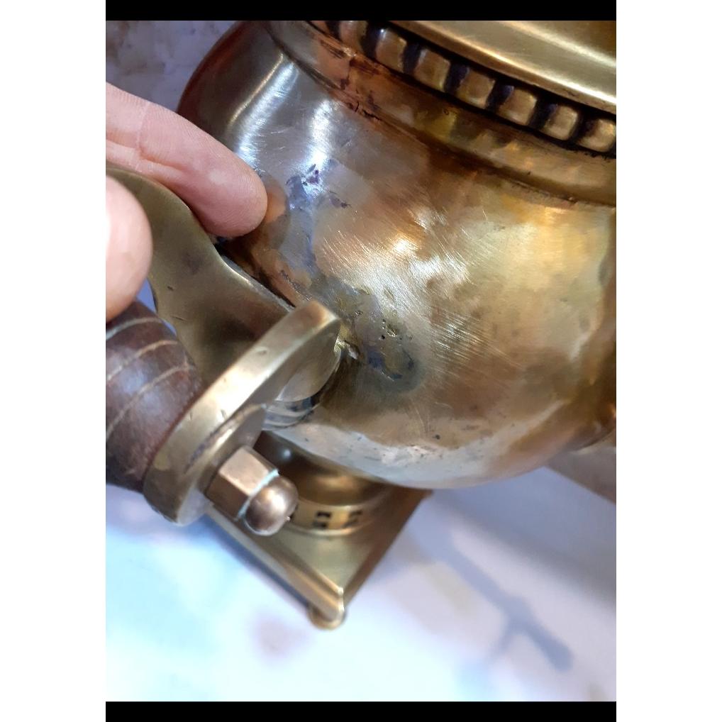 خریدار محترم از گوشه دسته اش تعمیر شده و شیرش لحیم شده و یه ذره شیر سماور کجی داره هر کسی خرید میتونه با 2 میلیون تومن میتونه بدین جوری درست کنن که سماور بالای 20 میلیون ارزش داشته باشه الان با این شرایط میتونید بدون هیچ مشکلی ازش استفاده کنید فقط برای اینکه خیلی زیبا دیده بشه بدین اون قسمت هاش هم رفع بشه